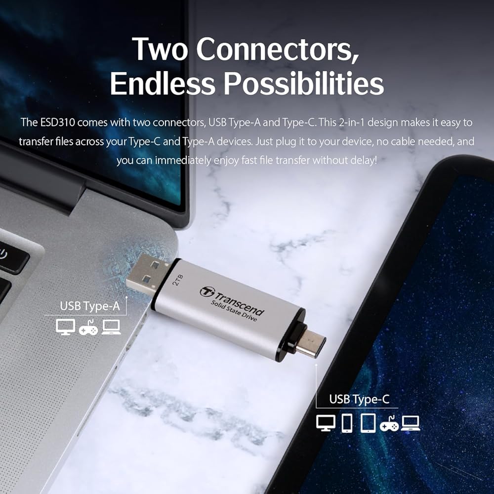 • 2-in-1 Dual USB-C & USB-A Design: مجهز بكل من منافذ USB-C و USB-A 3.2 ، فإن SSD مزدوج الواجهة SSD يجعل نقل البيانات دون جهد عبر الهواتف الذكية والأجهزة اللوحية وأجهزة Macbooks وأجهزة الكمبيوتر المحمولة وأكثر من ذلك. تحرير المساحة أو نقل الملفات على الفور بين هواتف Android Type-C و Tesla DashCams و Tevs الذكية وأنظمة صوت السيارات.