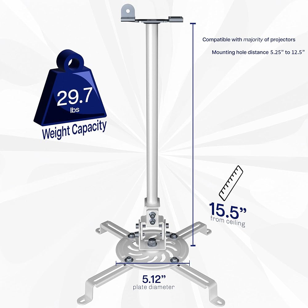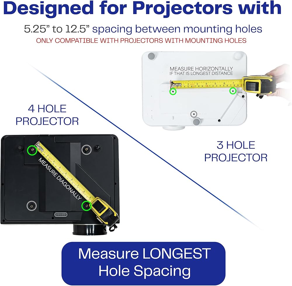 جبل الإسقاط العالمي: تم تصميمه بأذرع قابلة للتعديل لتناسب معظم العلامات التجارية لمجلة العرض مع النطاقات المتصاعدة من 5.25 "إلى 12.5". يجب أن تكون المسافة بين الثقوب المتصاعدة في الجزء الخلفي من جهاز العرض 12.5 "أو أقل