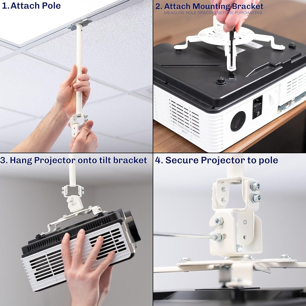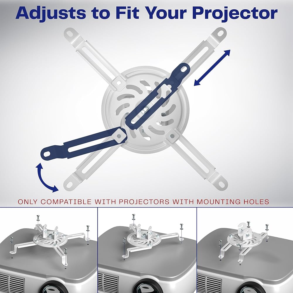 مرفق سهل: قم بتوصيل وفصل خطافات جبل جهاز العرض عن طريق تشديد وتخفيف مسامير التثبيت. يتم توفير جميع الأجهزة والتعليمات للتجميع والتثبيت