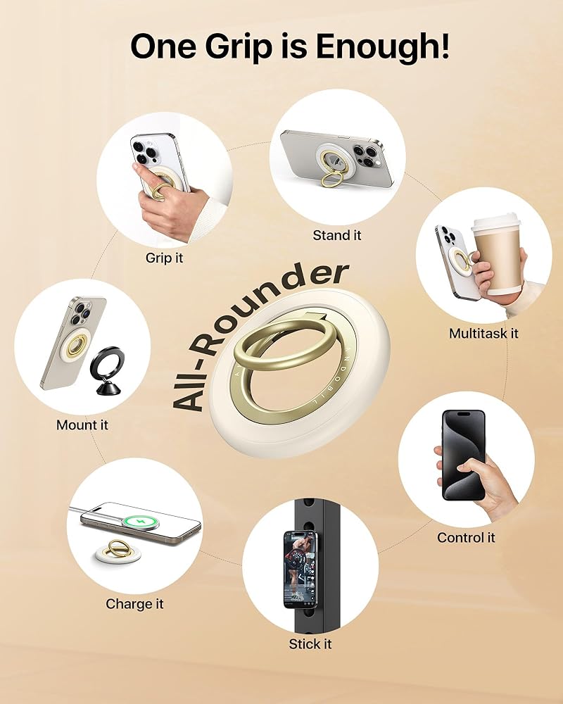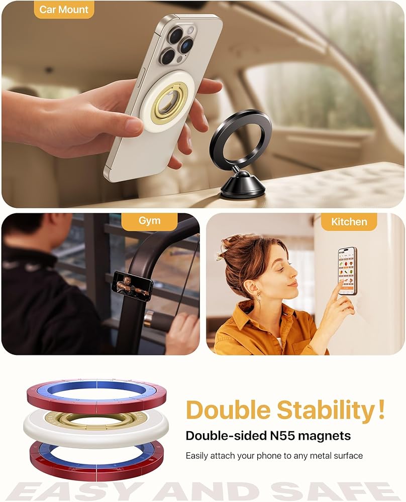 【𝑾𝒐𝒓𝒌 𝒇𝒐𝒓 𝑨𝒍𝒍 𝑷𝒉𝒐𝒏𝒆𝒔】 تم تصميم حامل حلقة الهاتف Magsafe خصيصًا للاستخدام مع أجهزة Magsafe وحالات الهاتف المعتمدة من Magsafe. قبضة حلقة الهاتف المغناطيسية متوافقة أيضًا مع الهواتف غير المغناطيسية وحالات الهاتف القياسية مع حلقات معدنية رقيقة (متوفرة) على ظهورها. متوافق على نطاق واسع مع جميع الهواتف الذكية Apple و Android ، بما في ذلك iPhone 16/15/14/13/12 سلسلة ، iPhone 11/11PRO/X/XS/XS MAX/8/7 ، Samsung Galaxy ، Google Pixel ، وأكثر من ذلك.