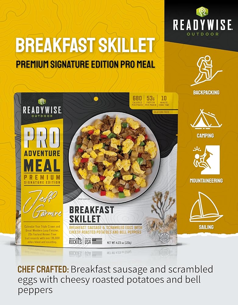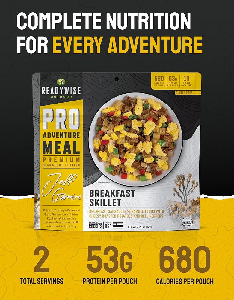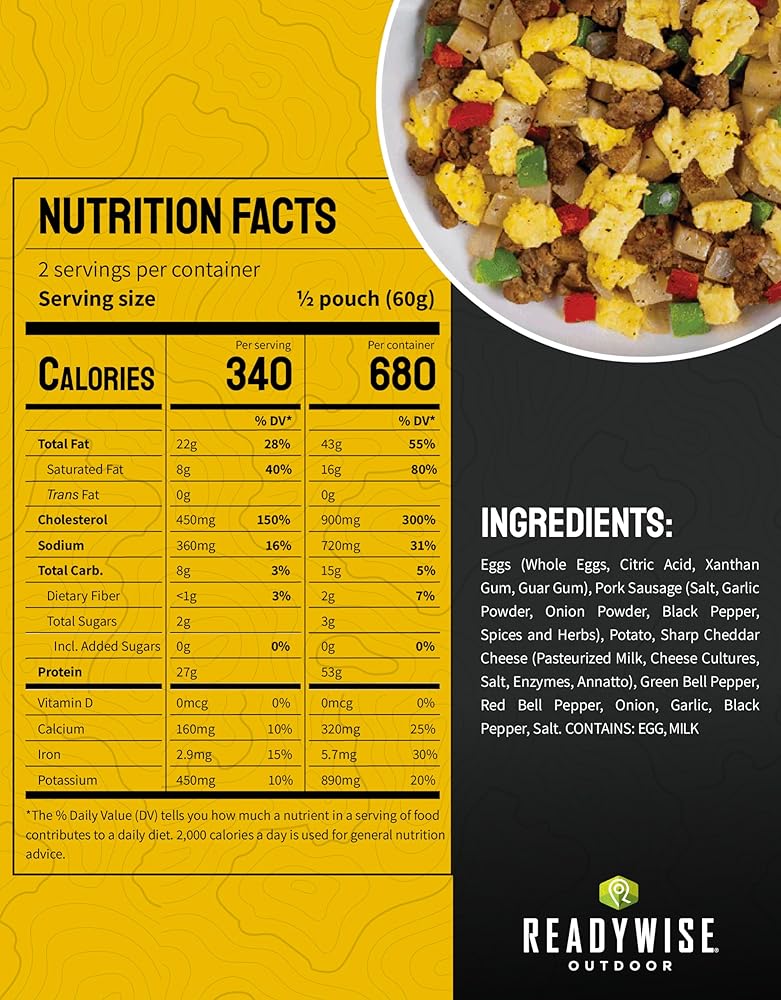 معبأة في التغذية: كل كيس من مقلاة الإفطار الجاهزة عبارة عن قوة من الطاقة ، حيث تقدم 680 سعرة حرارية ، و 15 جرامًا من الكربوهيدرات ، و 53 جرامًا من البروتين ، وهي ضرورية للحفاظ على الطاقة أثناء الأنشطة الصعبة في الهواء الطلق. يضمن هذا الخيار الخالي من الغلوتين أن يتم تلبية التفضيلات والاحتياجات الغذائية ، مما يجعلها خيارًا شاملاً لجميع المغامرين.