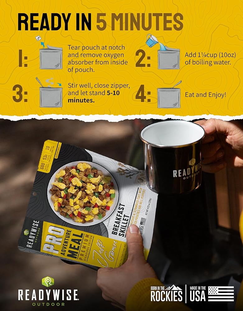 الجودة الموثوقة واستقرار الجرف: تم صنع وجباتنا في الولايات المتحدة الأمريكية بفخر للاحتفاظ بذوقها وقيمتها الغذائية لفترة طويلة. مع مدة صلاحية طويلة ، يمكنك أن تطمئن إلى خيار وجبة موثوقة وجودة للعديد من الحملات الخارجية الخاصة بك ، في أي وقت وفي أي مكان