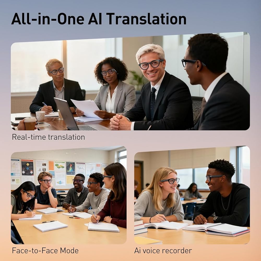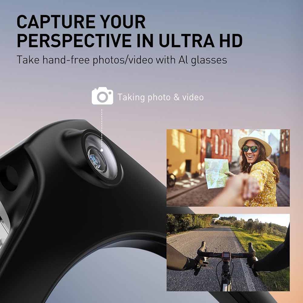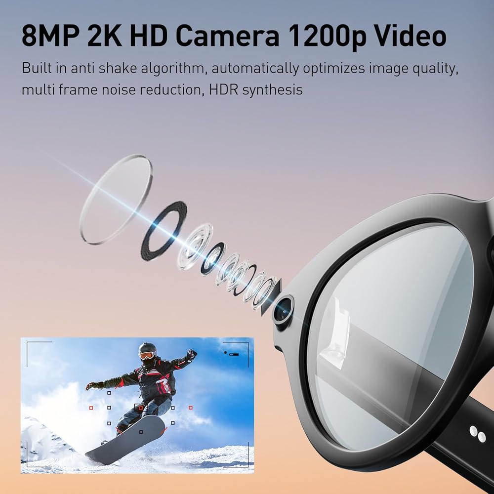 【AI ENHANCED CALLS】Equipped with dual mics + AI noise reduction, these smart glasses block 95% of wind and background noise, making calls sound like you're in a quiet room—even on busy streets or windy days