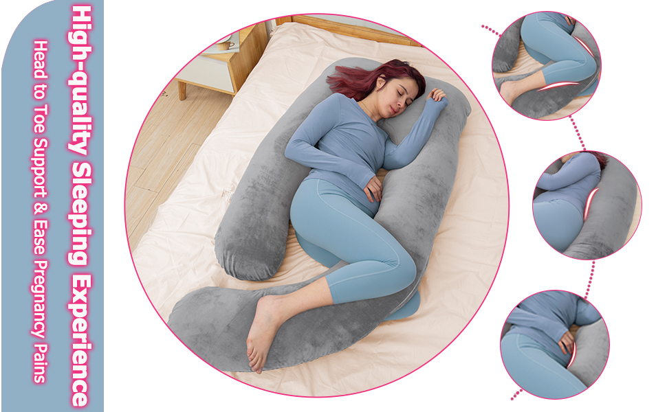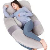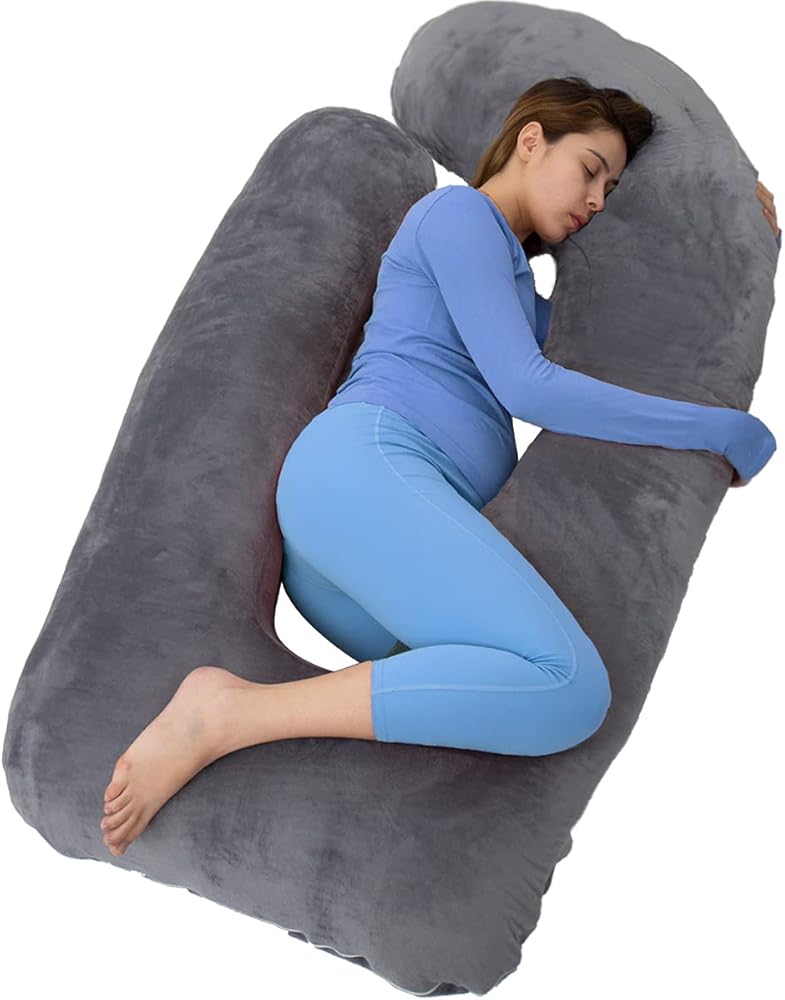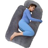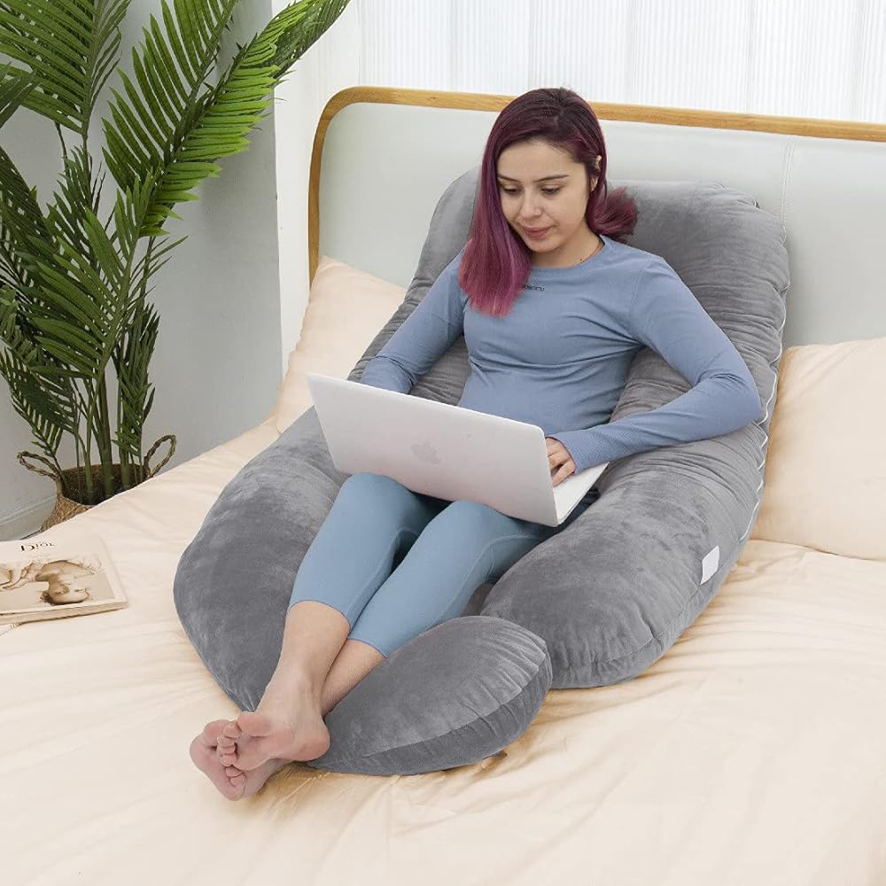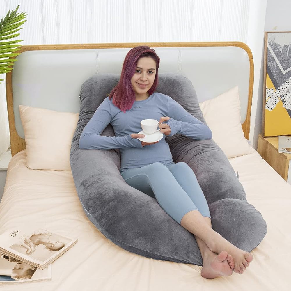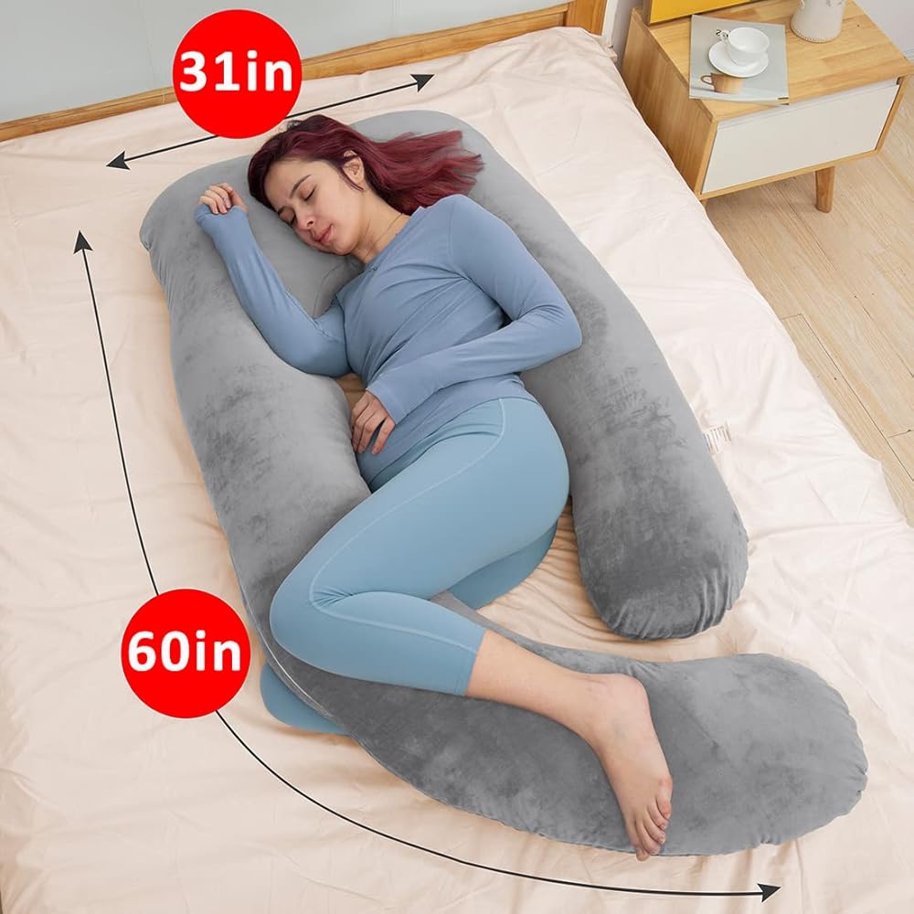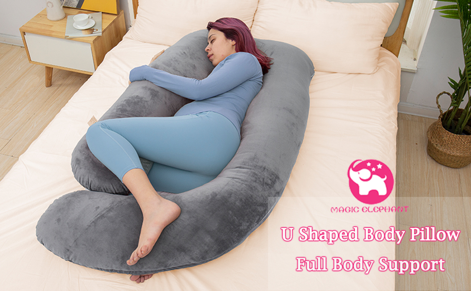 MAGIC ELEPHANT وسائد حمل مقاس 60 بوصة للنوم، وسادة أمومة للنساء الحوامل، وسادة جسم على شكل حرف U للبطن، دعم الظهر، وسادة جسم الحمل مع غطاء مخملي (رمادي)