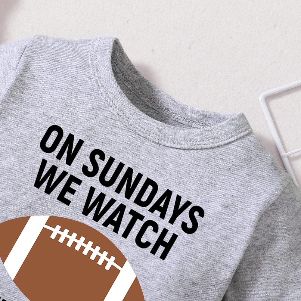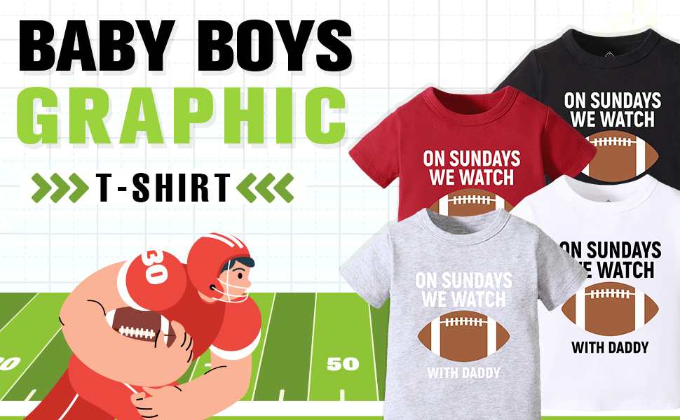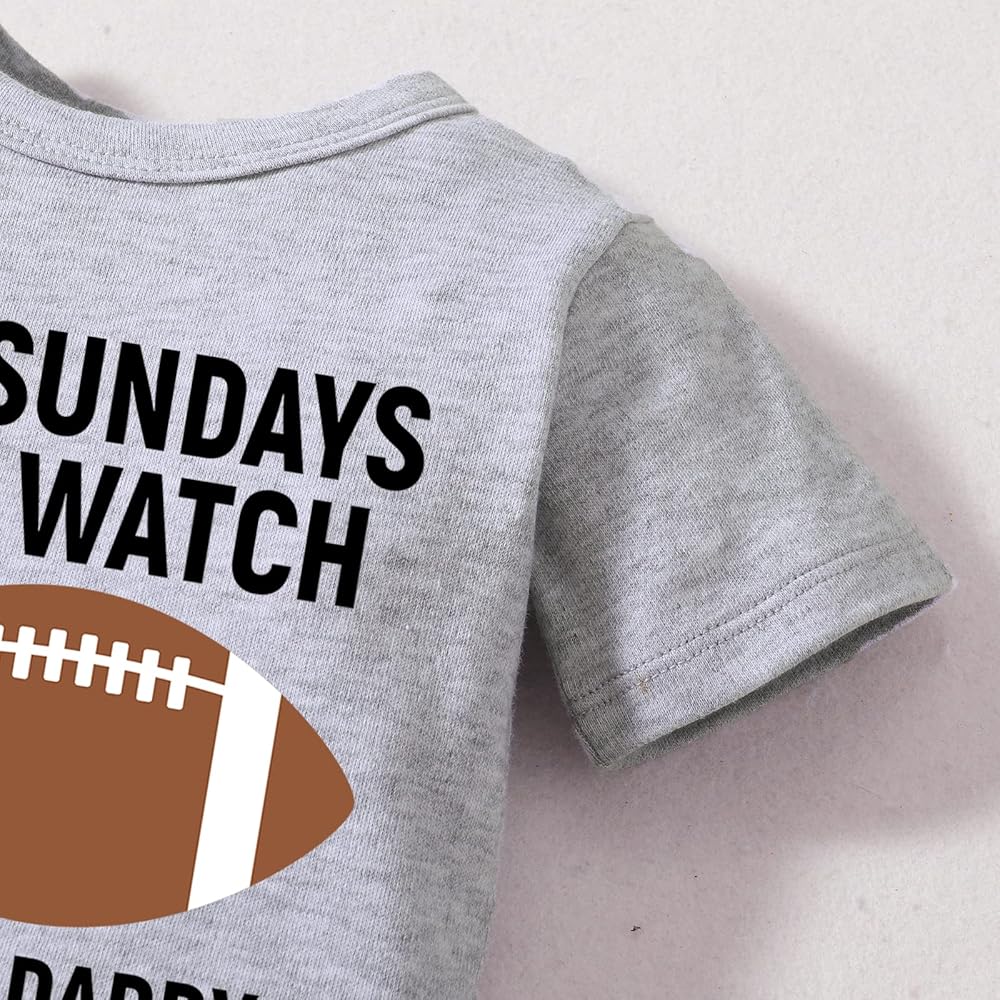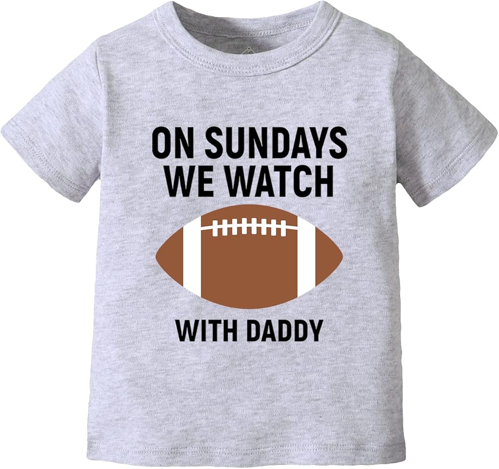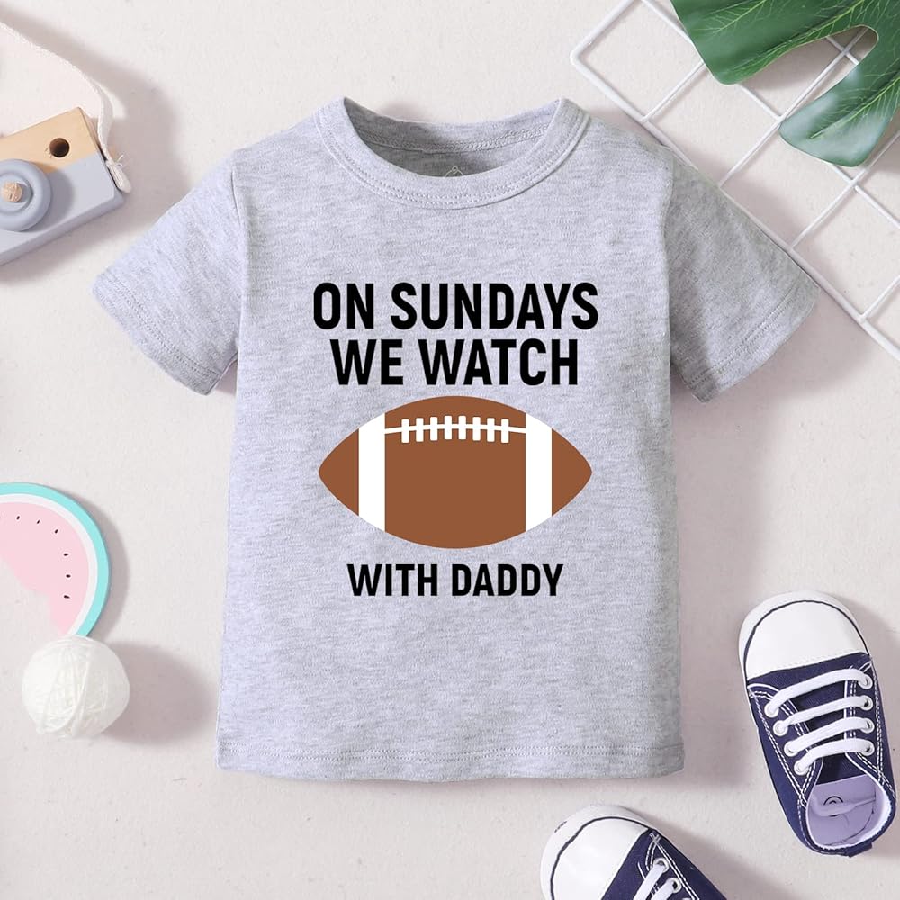 👍【تي شيرتات للأولاد الصغار】: تتضمن العبوة 1 × تي شيرت برسومات رمادية مع عبارة "On Sunday We Watch Football with Daddy" وتصميم جرافيك لكرة القدم في الأمام، وتي شيرت بأكمام قصيرة ورقبة دائرية