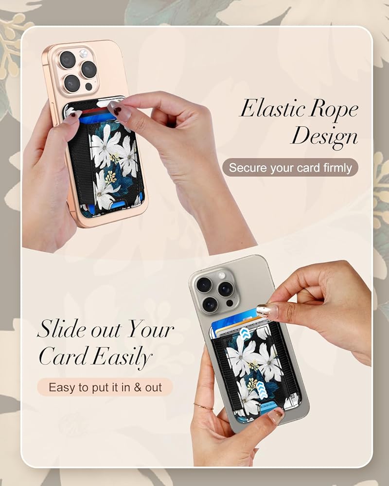 مغناطيس قوي: تحتوي هذه المحفظة المغناطيسية ذات البطاقة المنقوشة على مغناطيس مدمج أقوى ، وهو أقوى من أصحاب البطاقات المغناطيسية الأخرى ويمكن قطعه بسهولة على الجزء الخلفي من الهاتف
