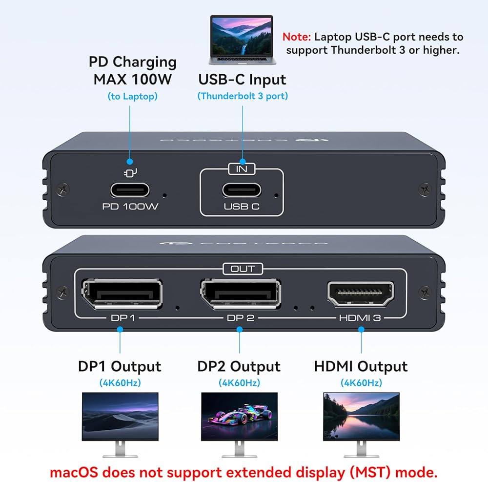 محول العرض متعدد الشاشة: تتيح شاشات Display Port Flitter 3 أن تكون إشارة DP (SST) أو موسعة (MST) من مصدر إلى شاشات 2 DP وشاشة HDMI واحدة ، مع عرض صورة واضحة 4K UHD أثناء نقل الصوت والفيديو عالي الجودة. ملاحظة: تأكد من توصيل كابل USB Micro للعرض الأمثل. لا تستخدم مع أي محطة إرساء/محور/kVM ، فقط أحادي الاتجاه 1 في 3 نقل. تدعم أنظمة Mac OS فقط وضع النسخ المتطابق (SST)