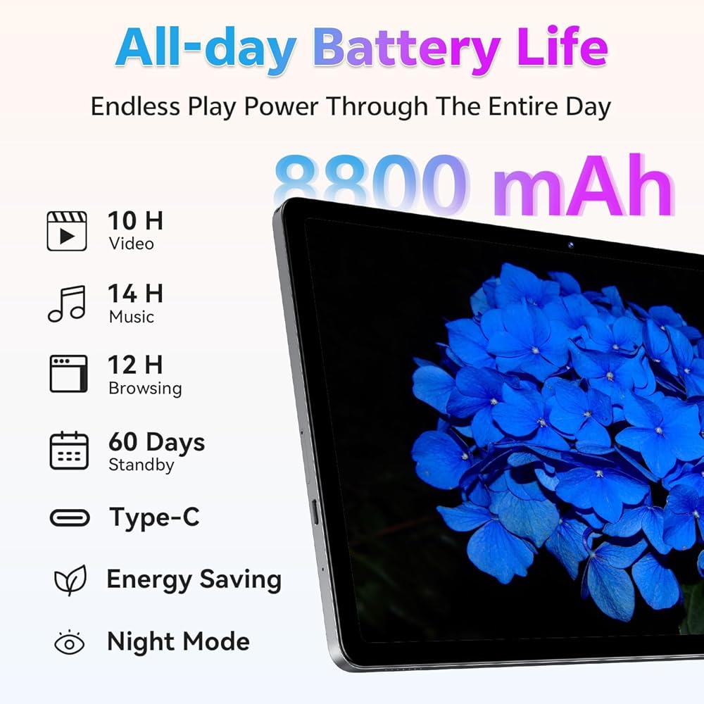 [Unisoc 8-Core Processor + 8000mAh بطارية طويلة الأمد + Wi-Fi + BT 5.0] يتميز الأداء القوي معالج Unisoc T606 ثماني النواة ، مما يوفر المهام المتعددة السلس والأداء الفعال. مزودة ببطارية 8000 مللي أمبير في الساعة ، مما يوفر وقت الاستخدام الطويل الأمد. يدعم WiFi مزدوج النطاق (2.4 جيجا هرتز+5 جيجا هرتز) وبلوتوث 5.0 للاتصال متعدد الاستخدامات. يدعم الاتصال عالي السرعة 802.11 A/B/G/N/AC معايير Wi-Fi للوصول الموثوق والسريع بالإنترنت