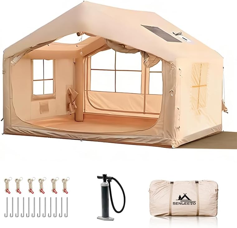 ⛺【 لماذا اختيار خيمة Senleeto Glamping】 خيمة التخييم القابلة للنفخ لدينا أكثر من ملجأ - إنه منزلك في البرية. يمكن لخيمة الهواء أن تحول تجربتك الخارجية من تحدٍ إلى ملاذ لا يُنسى. إليكم السبب في ذلك: الراحة: استمتع بالليالي المريحة مع التصميمات الداخلية الفسيحة والتهوية المناسبة. الحماية: يحميك موثوقة للعزل الطقس من المطر والرياح والشمس. الراحة: سهلة الإعداد وقابلية النقل تجعل تجربة التخييم الخاصة بك سلسة.