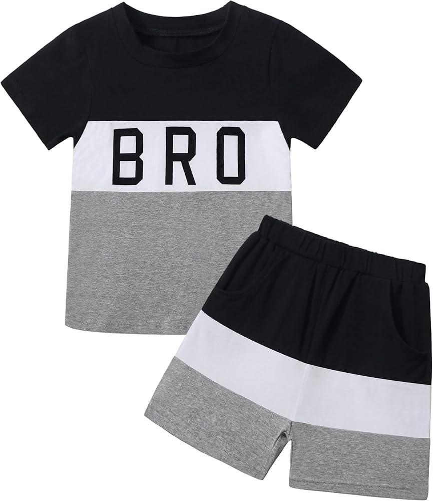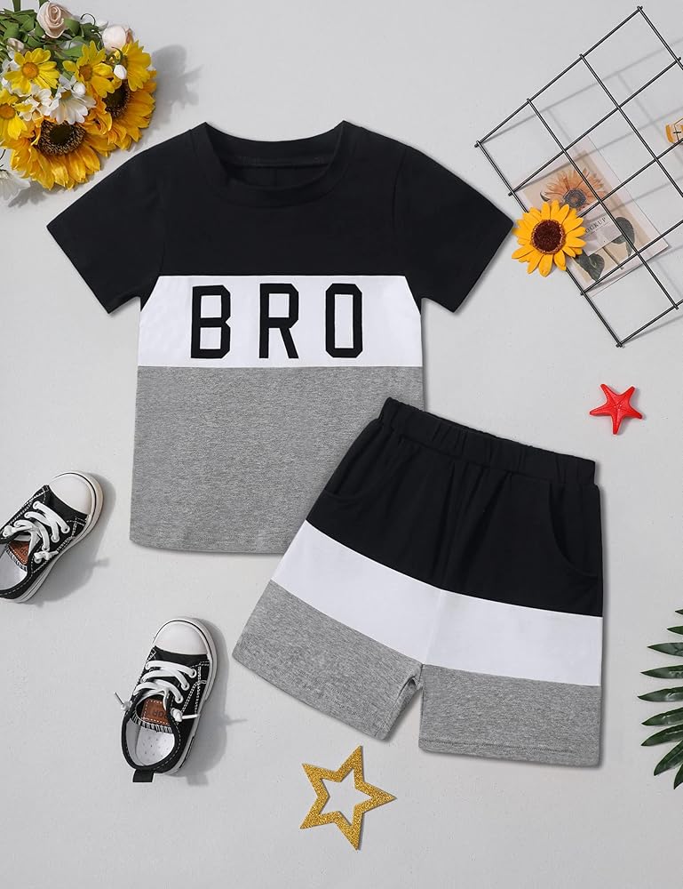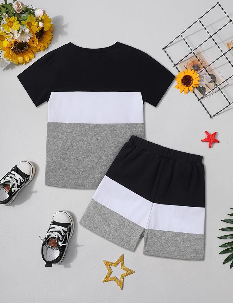 【تصميم فريد】تم تصميم ملابس الأطفال الصغار للأولاد مع تي شيرت قصير الأكمام مطبوع عليه حروف عصرية، يتوافق مع السراويل القصيرة. ارتديه سيجعل طفلك مشرقًا وعصريًا للغاية.