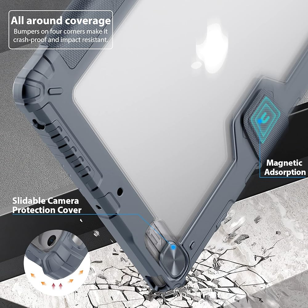 Full Protection: Beyond camera protection, this case offers comprehensive coverage for your iPad. The shock-absorbent material safeguards against drops, impacts, and daily wear and tear, ensuring your device stays in pristine condition.