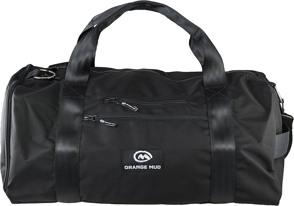 Is your gym bag too small? Do you wish it had pockets for securing your wet gear that is easily removable? Does it have a small bag to hold your bathroom goodies? Most importantly is it made out of materials that are crazy strong, built to last, and made in the USA? We have the solution. The shell of this bag uses a 1680 denier ballistic nylon, a material created for WWII fighter pilots flak jackets to protect them from flying shrapnel. It's strong, very strong. It also is resistant to high heat, 356F to soften, 410F to melt. Why are we telling you this? I don't know, but it's tough, we're proud of that. It's roughly 20% to 30% larger than the typical gym bag, has a removable shoe compartment, removable dirty/wet clothes compartment, and removable toiletries compartment. On top of that, its orange interior is vibrant and makes finding your stuff a breeze. The four pockets on the outside are sized for locks, keys, wallet, phones, tablets, whatever you want. This bag is tough, way tougher than you need, and yes, this will last a lifetime. This is a gym bag for athletes, designed by athletes. ~Shell - 1680D Ballistic Nylon ~Interior Pockets and lining - 420D water resistant fabric ~Straps - 2" industrial seat belt webbing, 2" steel clips, 2" steel slider ~Water resistant pockets - 420D water resistant nylon ~Zippers, there are 8 - YKK, best in the business ~D-ring - 2" x .1875" Steel, welded d-ring. ~Size, Main Bag: 22" long, 14" wide, 12" tall - volume, 3390 cubic inches ~Size, Large dirty/wet clothes bag: 20" long, 6" wide, 11" tall - volume, 1256 cubic inches ~Size, Small bag, 11" long, 5" wide, 6" tall