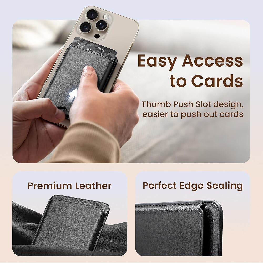 【Universal Magnetic Compatibility & RFID Blocking】Perfectly aligns with iPhone 12/13/14/15/16 series (all models/pro sizes), Apple MagSafe cases, and third-party magnetic phone cases. Not compatible with non-magnetic silicone/rubber cases. RFID blocking ensure your cards information safe。
