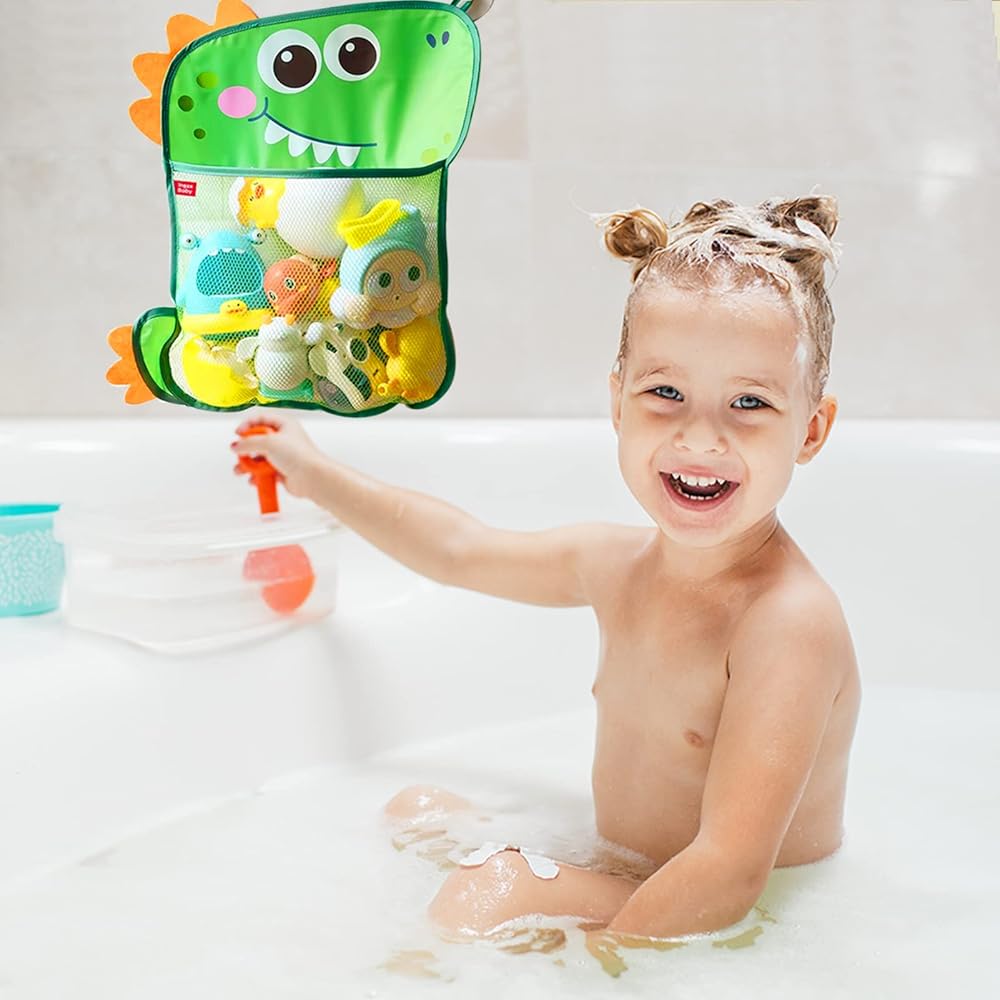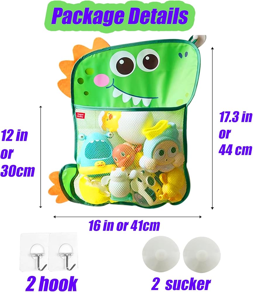تخزين ألعاب الحمام من LieKmei، منظم ألعاب حمام الأطفال للحوض، حامل ألعاب حمام الأطفال، شبكة ألعاب الديناصورات لألعاب الحوض، حامل ألعاب استحمام الطفل، تخزين ألعاب الحمام للحوض، حقيبة تخزين ألعاب حوض الاستحمام