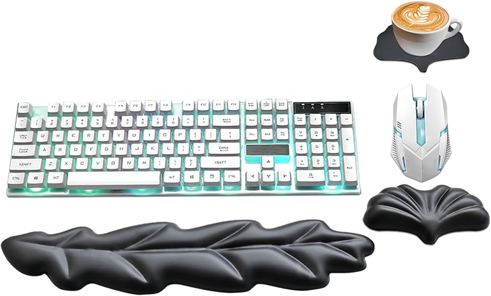 【إكسسوارات الكمبيوتر lat】 بما في ذلك 1 راحة معصم ورقة مفاتيح لطيفة (16.7x4.1 '') ، ودعم معصم أوراق الماوس 1 (5.9x3.7 '') و 1 كوب كوستر (4.7x3.9 ''). ملحقات مكتب الألعاب المثالية لمكتب المنزل والمدرسة