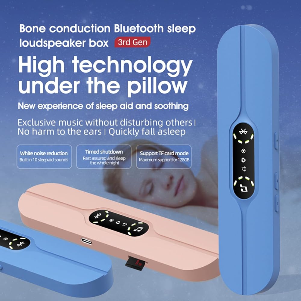 Pillow Speaker for Sleeping, Mini Bone Conduction Bluetooth Under Pillow Speaker with 10 Soothing Sounds, Sleep Timer, TF Card Support for Side Sleepers & Deep Sleep, Blue