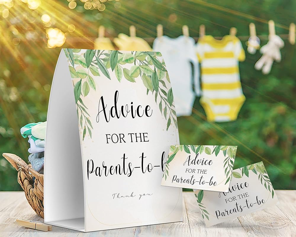 نصيحة للآباء المستقبليين، ألعاب استحمام الطفل باللون الأخضر، حمام الطفل ذو الطابع الأخضر، بطاقات نصيحة للآباء الجدد باللون الأخضر، تذكارات للأم والأب الجديد - لافتة واحدة + 50 بطاقة (GES19)