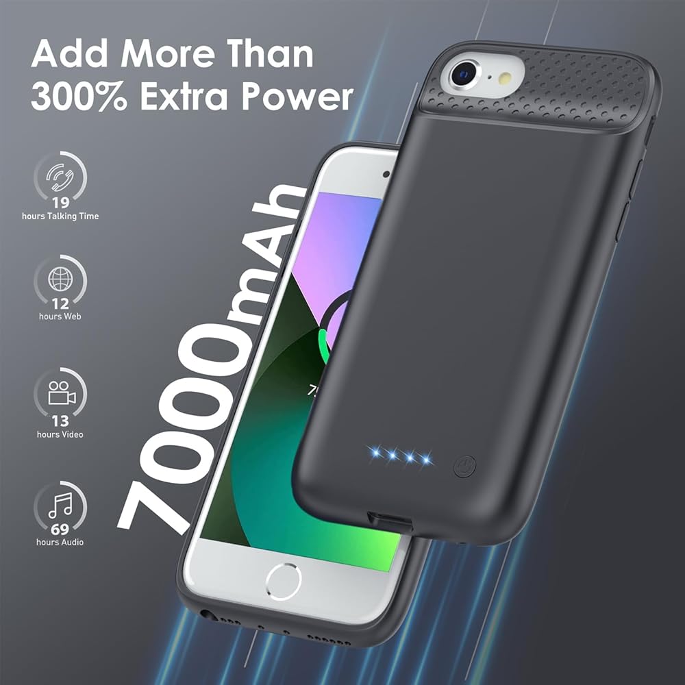 【Packing List & Warranty】7000mAh battery case for iPhone 6/6s/7/8/SE(2022/2020)(4.7 Inch) * 1, Tempered-Glass Screen Protector * 1, User Manual *1. We promise 7/24H online service and lifetime technology support to ensure you enjoy your purchase for a long time.