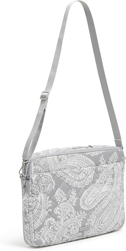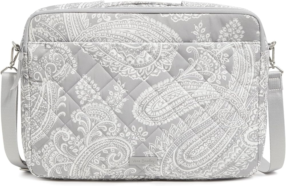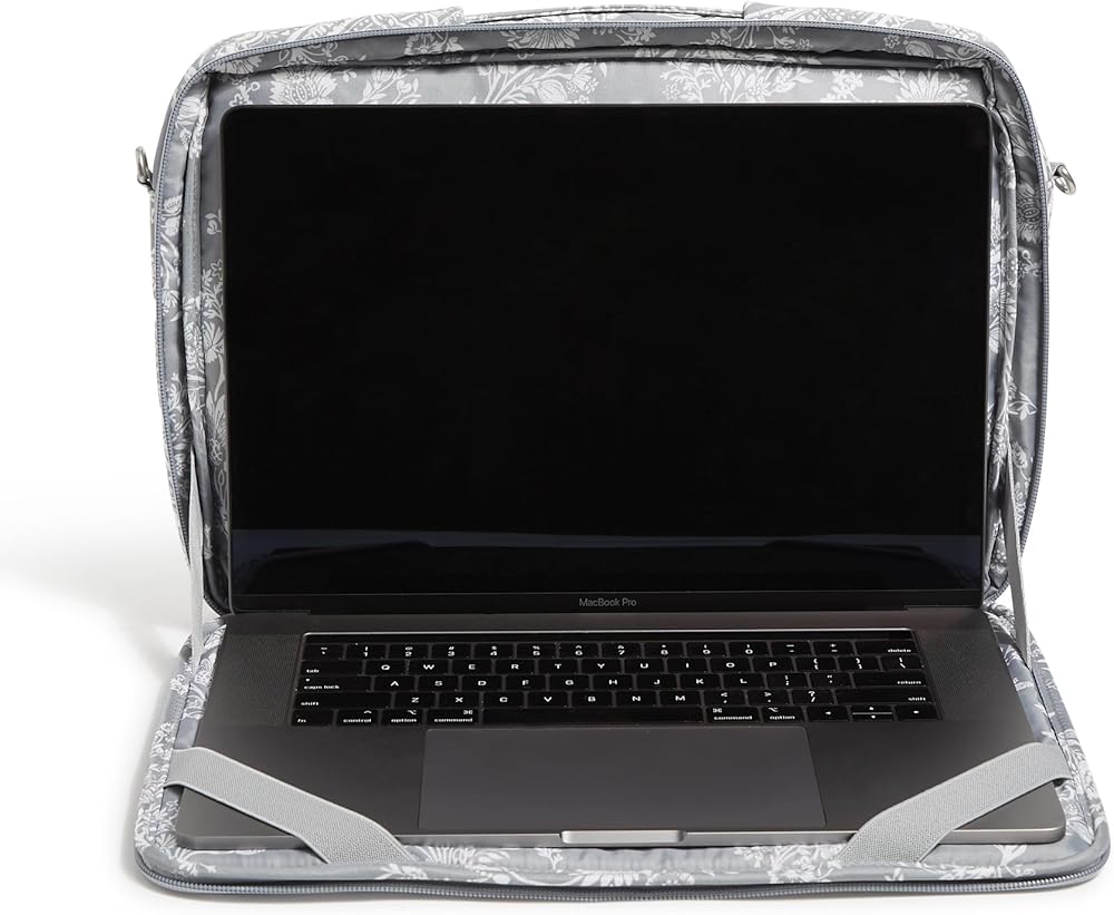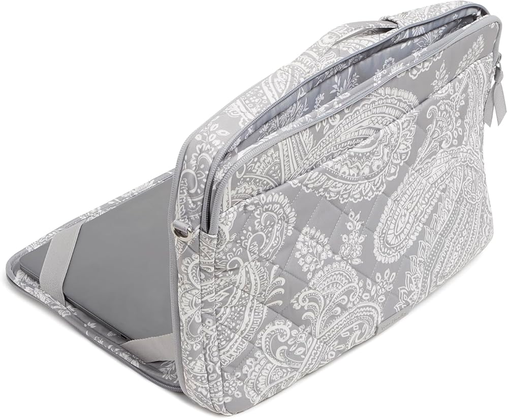 Keep your tablet or lap top safe and organized with Vera Bradley laptop bags, laptop cases, laptop holders, tablet case, iPad case, and iPad holders. Made from quilted, sleek, water-repellent polyester. Exterior features a front slip pocket. Two zip compartments. Front compartment: a mesh slip pocket, two pen slip pockets and two slip pockets. Back compartment: Padded laptop compartment with two elastic loops. Retractable handle. Zip closures. Spot clean with mild detergent and a soft, damp cloth, rinse thoroughly; lay flat to dry