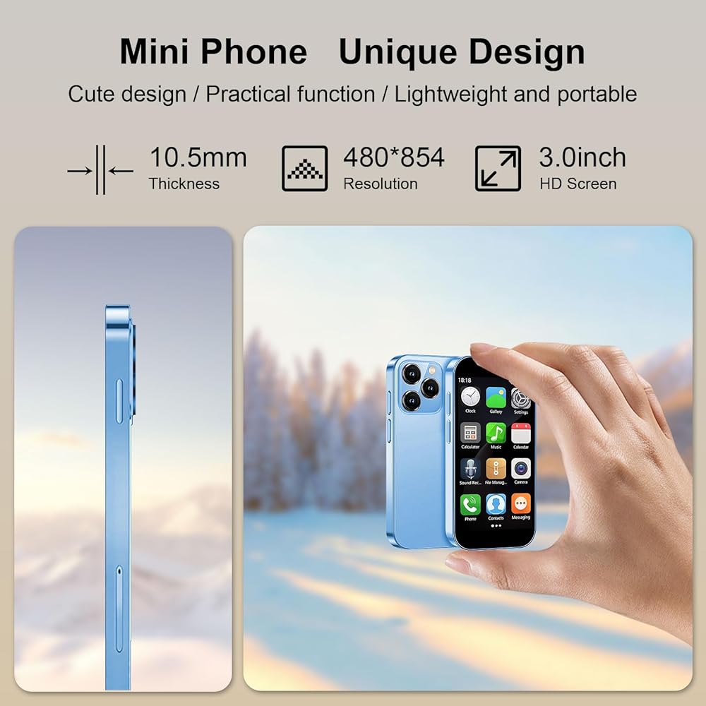 هاتف Mini ، الهاتف الذكي HD Screen Mini Screen Mini 3.0 بوصة ، وأفصل عن Android Kids and Students ، والتعرف على الوجه ، وربط Core Dual Dual Standby ، وأفضل هدية للأطفال ، 2 جيجابايت+16 جيجابايت (أزرق)