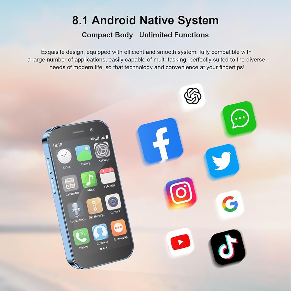الهاتف الخليوي للوظيفة القوية: تم تجهيز هاتف WV Leisuremaster Mini بمعالج رباعي النواة ، مما يضمن أداء سلس وخالي من التأخر. بفضل نظام Android 8.1 ، يدعم معظم التطبيقات ويتوافق مع التطبيقات الشائعة من متجر Google Play ، بما في ذلك Facebook و YouTube و Instagram و WhatsApp و Tiktok و Twitter والمزيد.