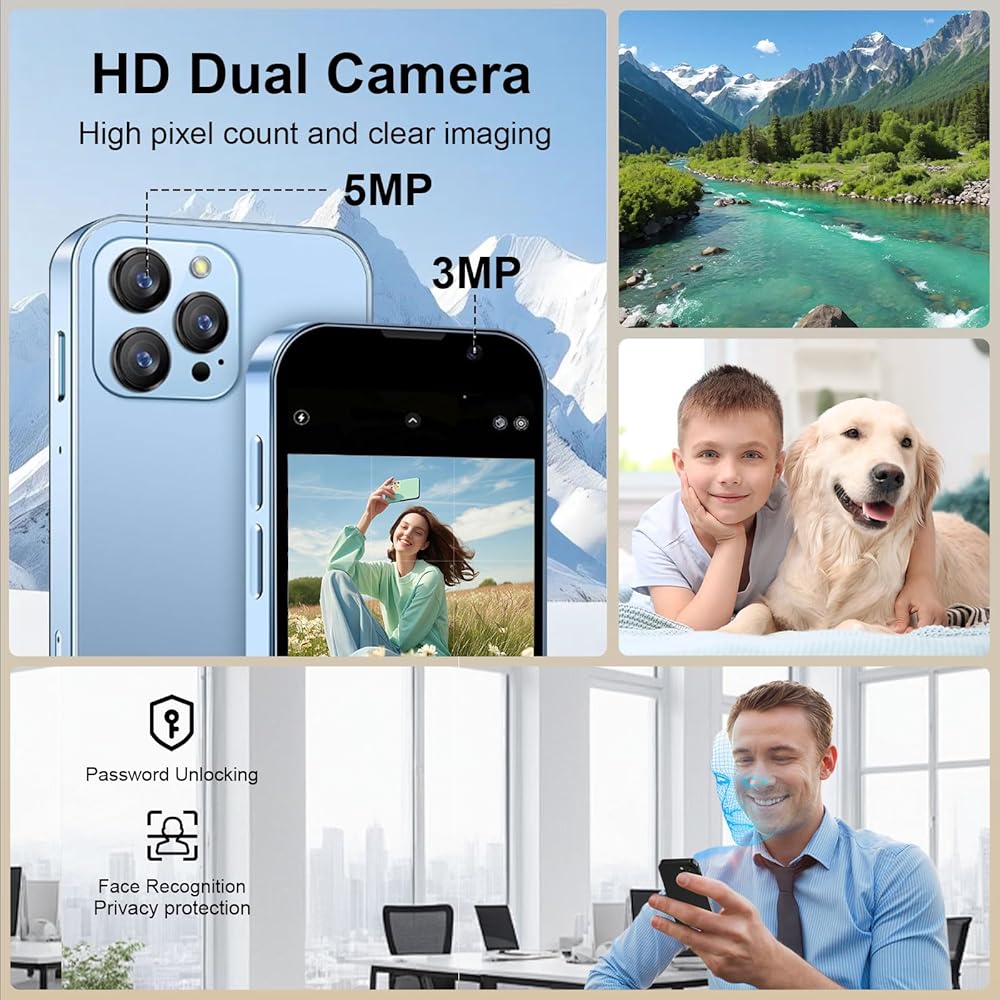 هاتف Mini Dual Camera: مزود بكاميرا أمامية 3 ميجابكسل وكاميرا خلفية بدقة 5 ميجابكسل ، يمكن للهاتف الخلوي LeisureMaster Mini التخلص من الصور والتقاط لحظات الحياة بسهولة. سواء كنت تقوم بتسجيل مكالمات حياتك اليومية أو الفيديو ، فإن جودة الصورة واضحة ومفصلة. بالإضافة إلى ذلك ، تم تجهيزه بتكنولوجيا التعرف على الوجه المتقدمة ، والتي هي آمنة ومريحة ، وحماية خصوصيتك في جميع الأوقات.