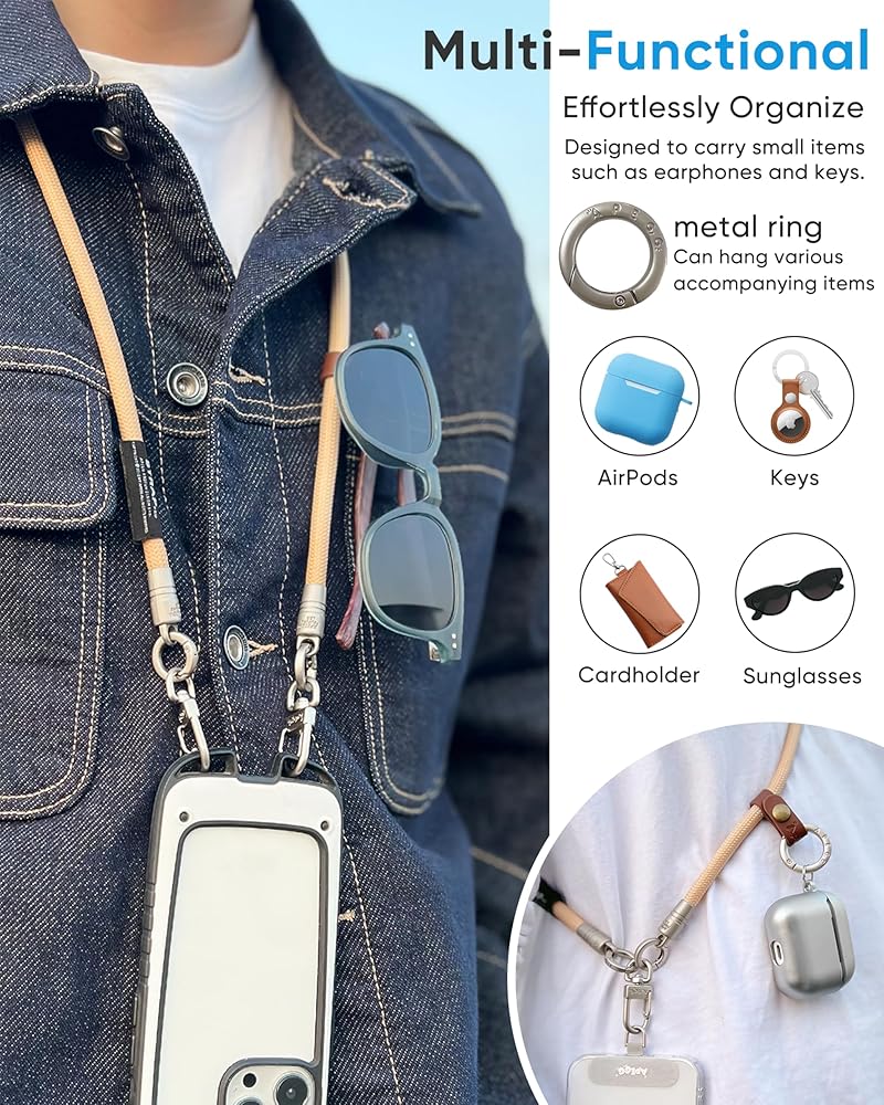 【Multi-Functional Companion】Beyond phones: Hang sunglasses during beach runs, secure AirPods on hiking trails, or dangle keys at music festivals. Or wear it as a mini crossbody by attaching your portable pouch.