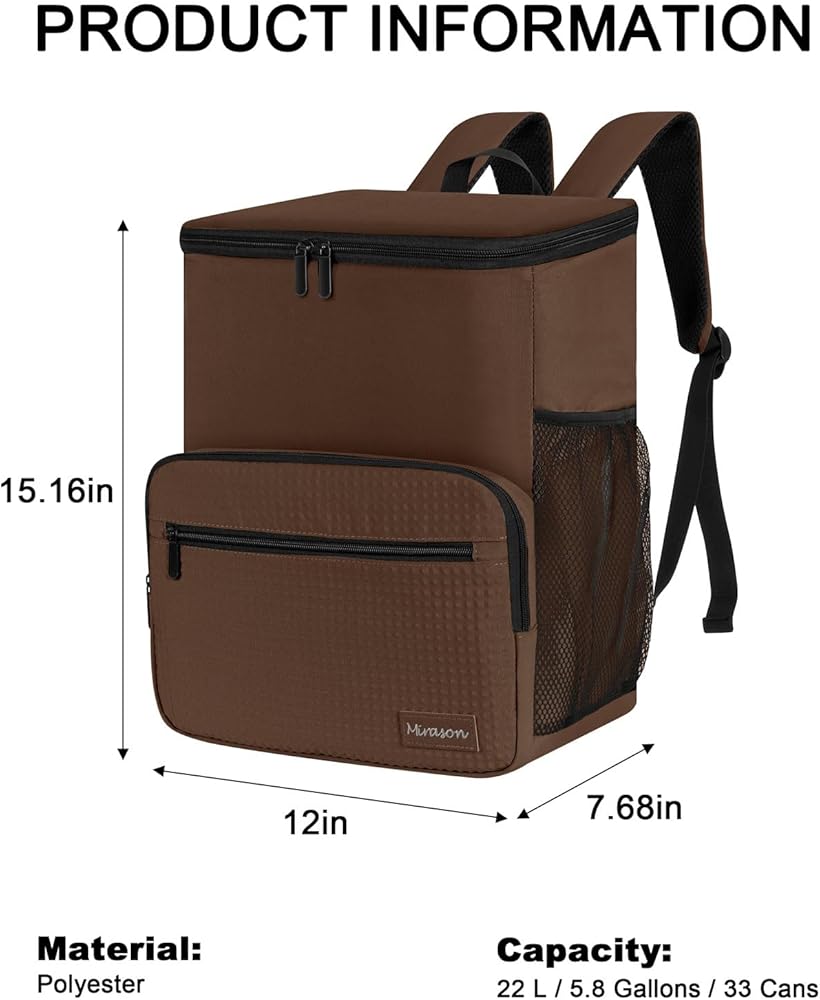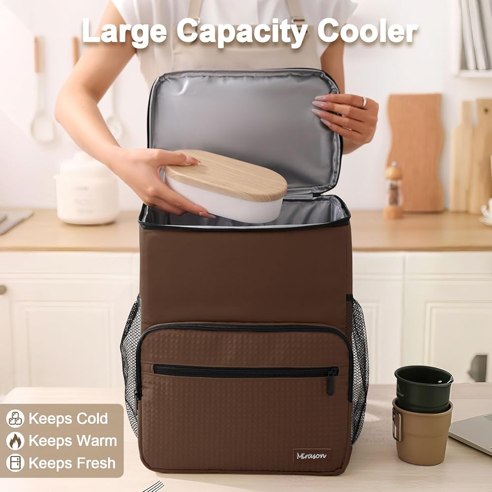 Long-Lasting Freshness: Designed with three high-performance layers—durable polyester fabric, thick pearl cotton insulation, and a PEVA waterproof lining—this soft cooler bag offers exceptional thermal performance. Whether you're keeping drinks cold or food warm, the MIRASON hot and cold backpack cooler keeps contents chilled for up to 20 hours (with ice packs) or warm for up to 12 hours