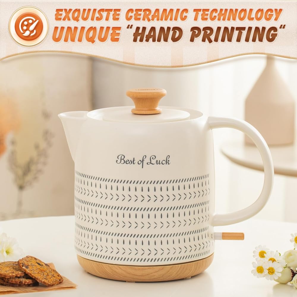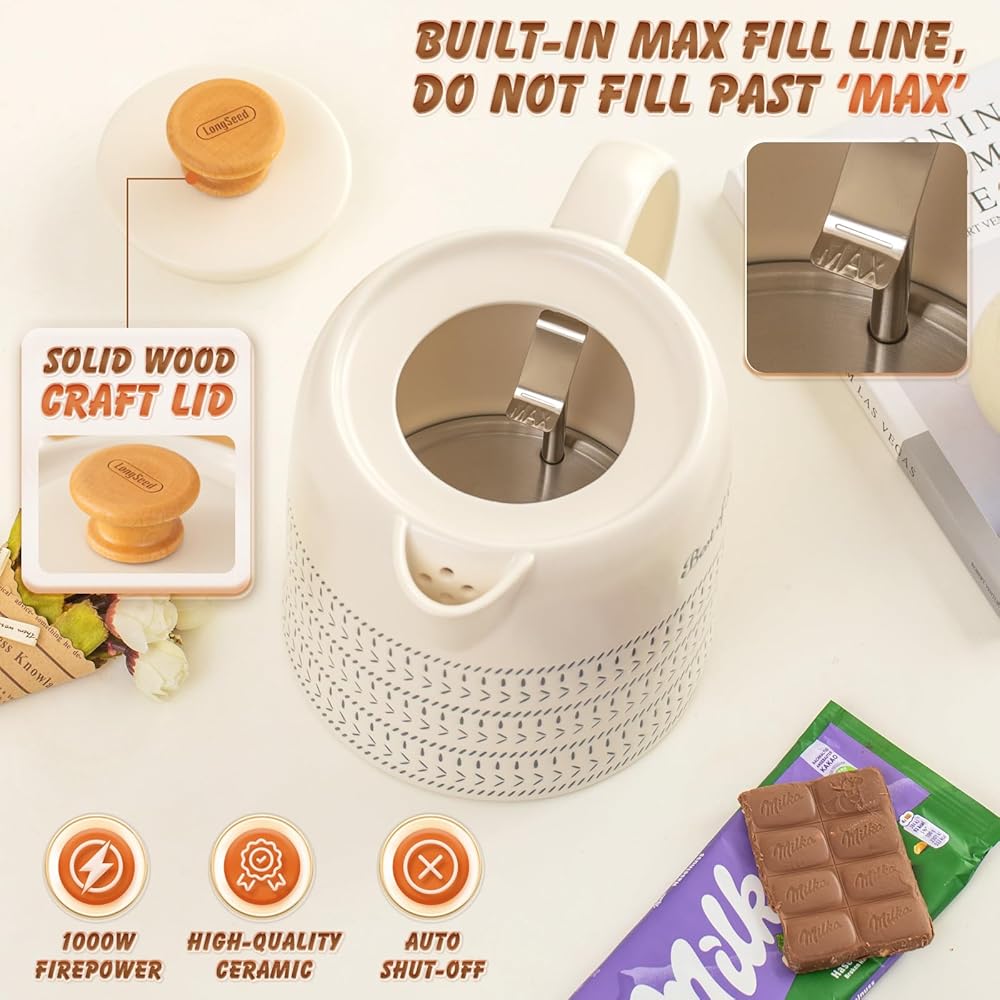المواد الرئيسية وعاء : مصنوعة من السيراميك ، الذي تم إطلاقه في 2372 ℉ ، لا يطلق أي مواد كيميائية ضارة. تسخين الفولاذ المقاوم للصدأ لوحة قاعدة داخلية. BPA خالية-صفر طعم بلاستيكي. لن يصدأ. إذا كنت تفضل طعم الماء ، فإن غلاية الكهرباء الخزفية هي الخيار الأفضل