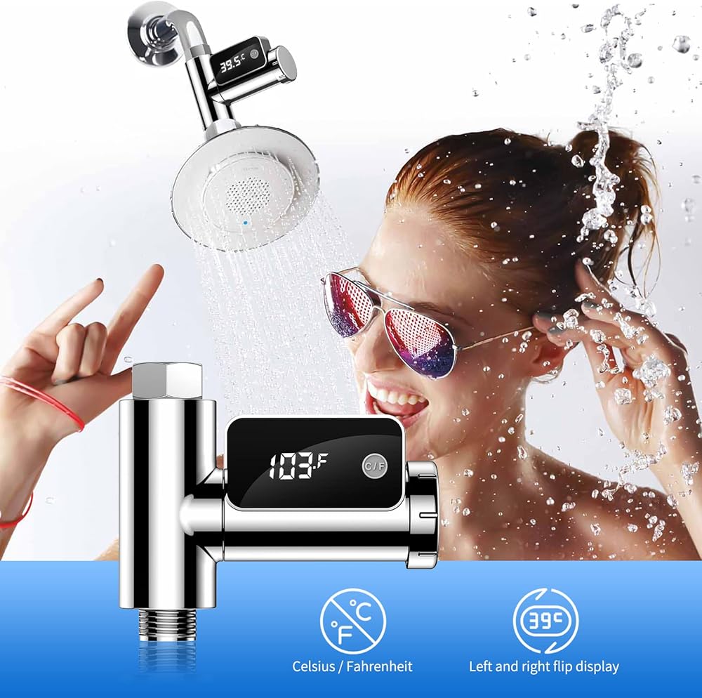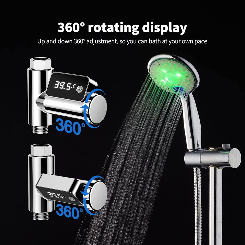 جهاز قياس حرارة الدش الرقمي من Mastlend، جهاز قياس درجة حرارة الماء الذكي، جهاز قياس حرارة تدفق المياه، شاشة عرض LED قابلة للدوران، جهاز مراقبة درجة حرارة الماء في الحمام