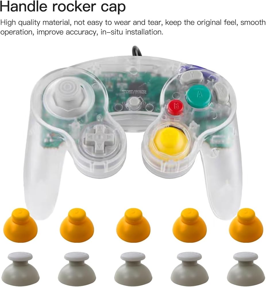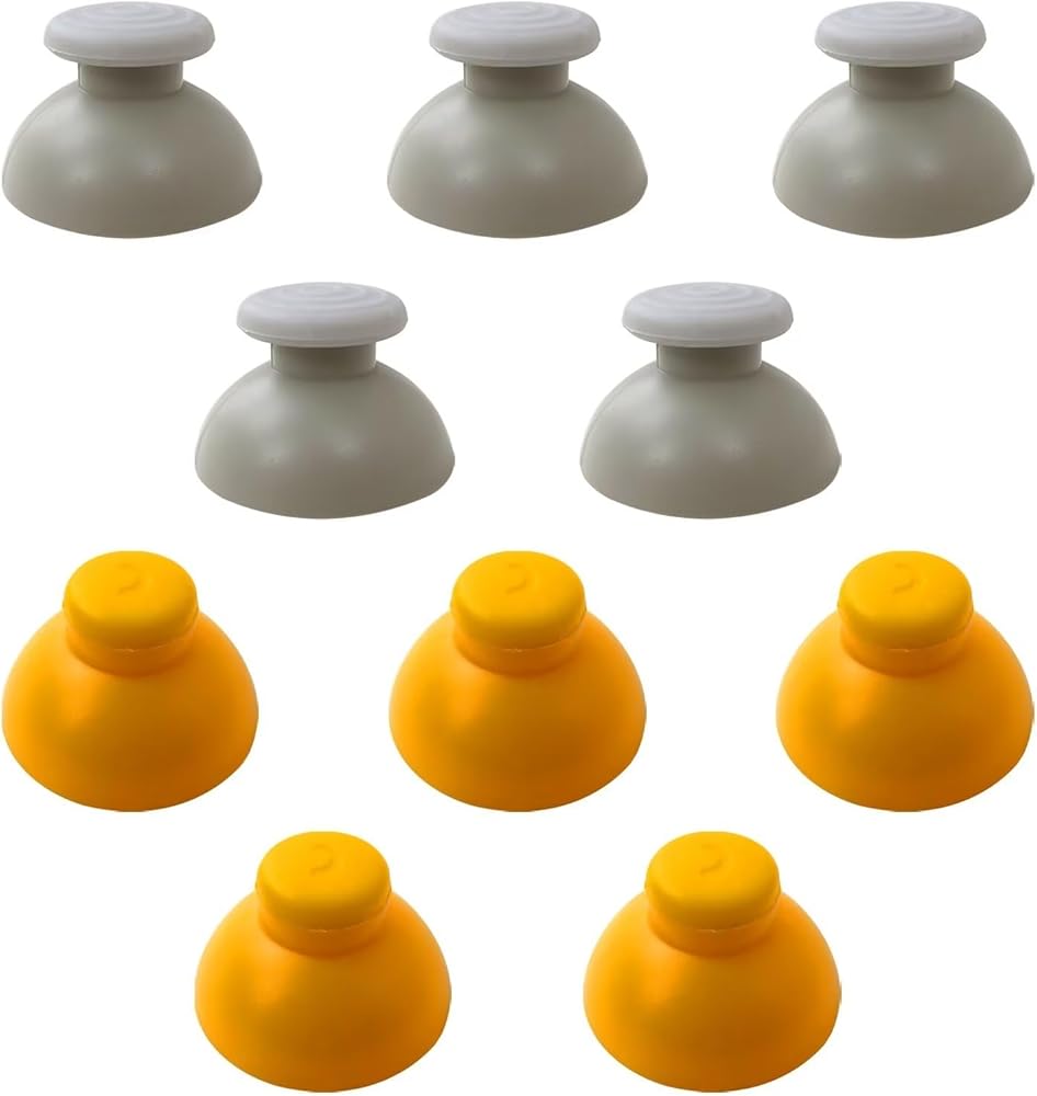 5 gray and 5 yellow replacement thumbstick caps to replace worn-out thumbstick caps, which tend to wear and peel-off very easily