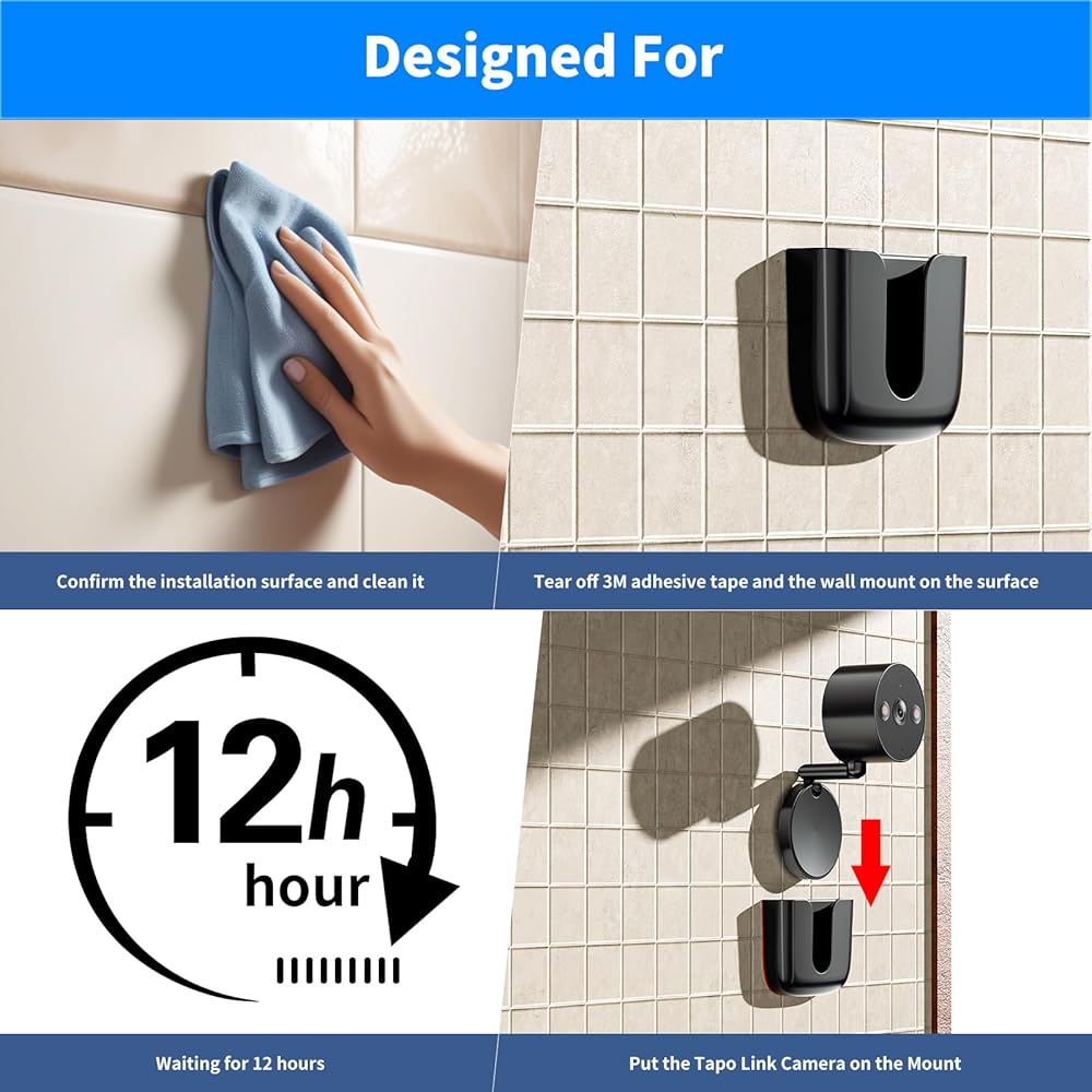 • [ Easy Installation ] -This TP Tapo Link camera mount is suitable for smooth surfaces, such as metal doors, wooden doors, marble and so on. In order to make the Tapo camera mounting more firmly, we need to wait 12 hours before installing the camera