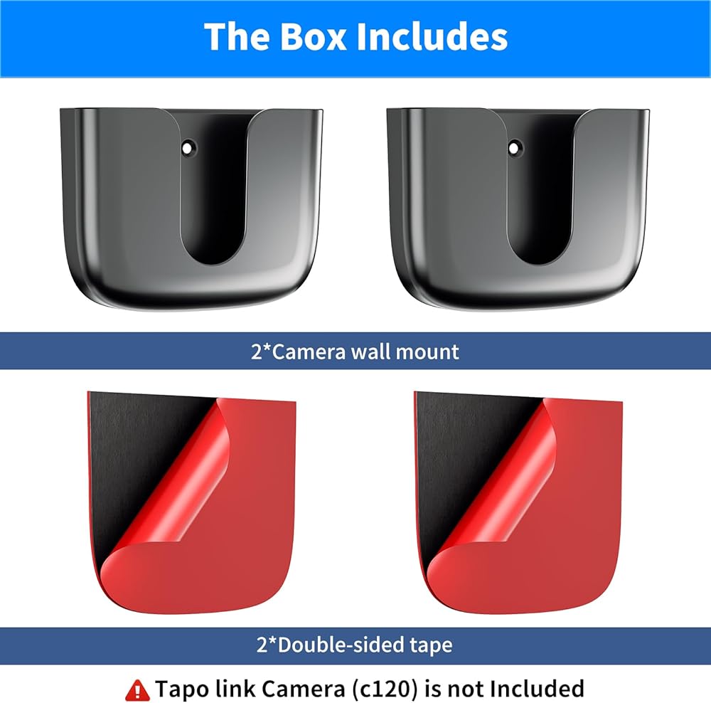 • [ No drilling camera mount ] -If you have a Tapo Link camera C120, this compact and small mount is a great choice.The no drilling camera mount allows you to protect the wall and camera from damage. Also, it won't affect the camera's field of view