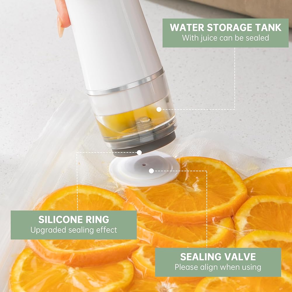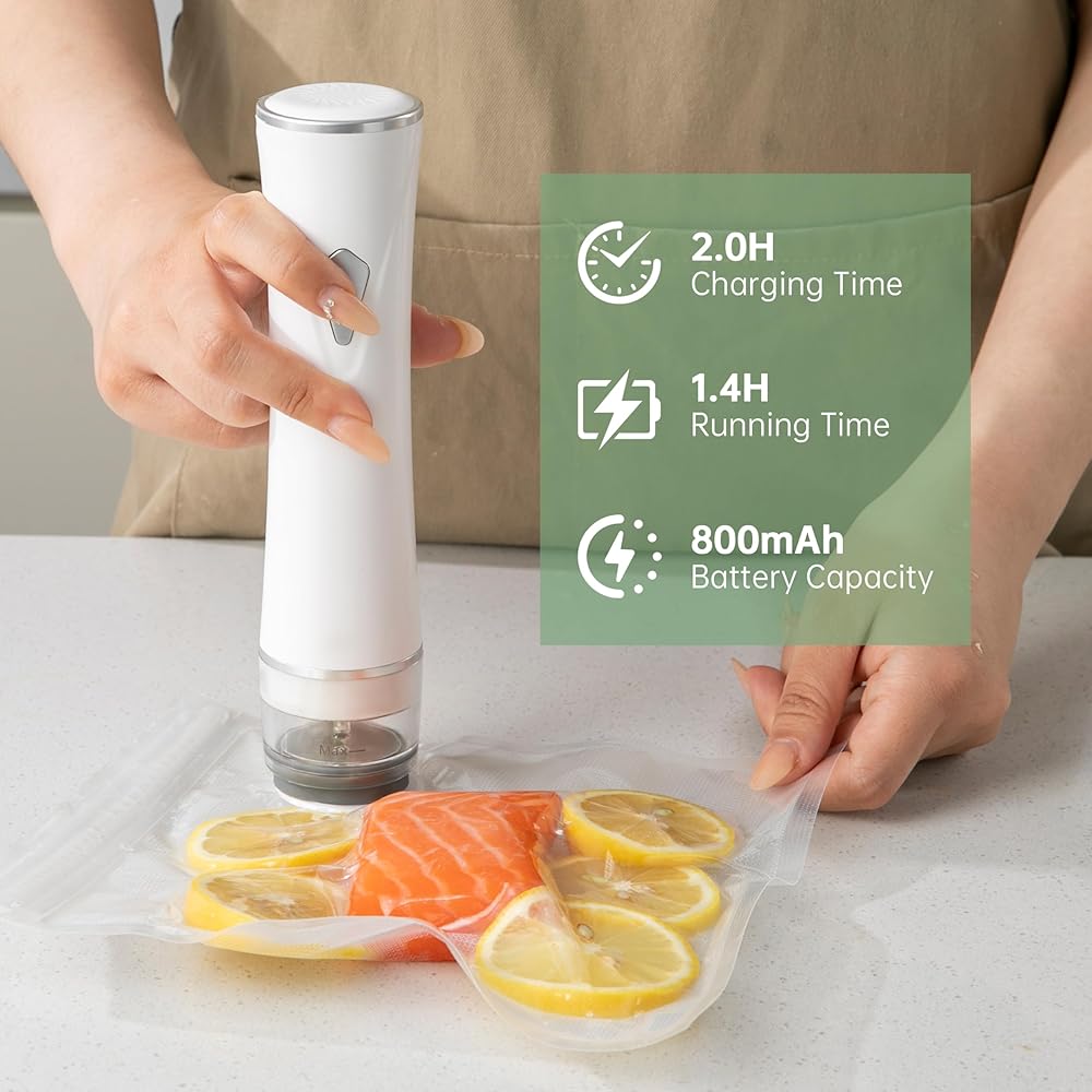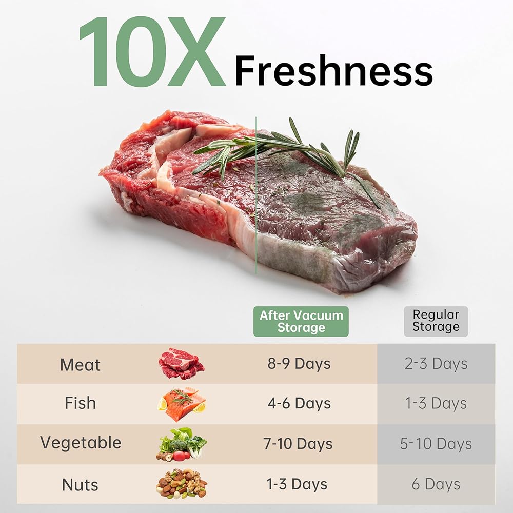 • شفط قوي ونضارة طويلة الأمد: مزود بمضخة فراغ قوية ، فإنه يزيل الهواء بسرعة ويوفر شفطًا قويًا. إنه يمتد نضارة الطعام بما يصل إلى 5 مرات ، ويحجز في النضارة والمواد المغذية. هذا يساعد على تقليل نفايات الطعام ، مما يتيح لك الاستمتاع بوجبات جديدة وصحية