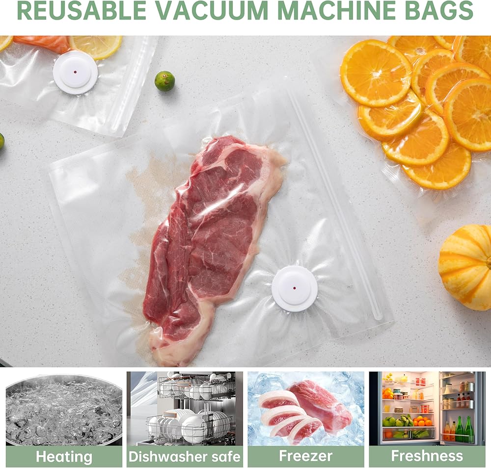 • أكياس فراغ مغلقة مزدوجة الطبقات: أكياس فراغ مزدوجة الختم مع أداء ختم محسّن وختم طويل الأمد. مقاومة للحرارة ، ومناسبة لتدفئة الميكروويف أو تخزين الفريزر. قابلة لإعادة الاستخدام للحوم والفواكه والخضروات والسلع المجففة ، سهلة التنظيف ، وأمان غسالة الصحون