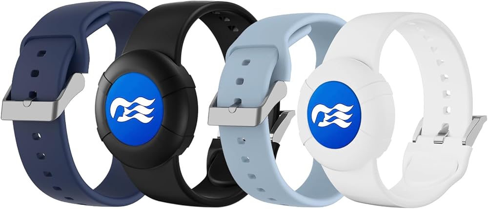 4 Pack Princess Cruise Medallion Holder ، معصم السيليكون الناعم لميدالية المحيط كرنفال ، أحجامان (S و L) في حزمة واحدة (Black & Midnight Blue (L)+Blue & White (S))