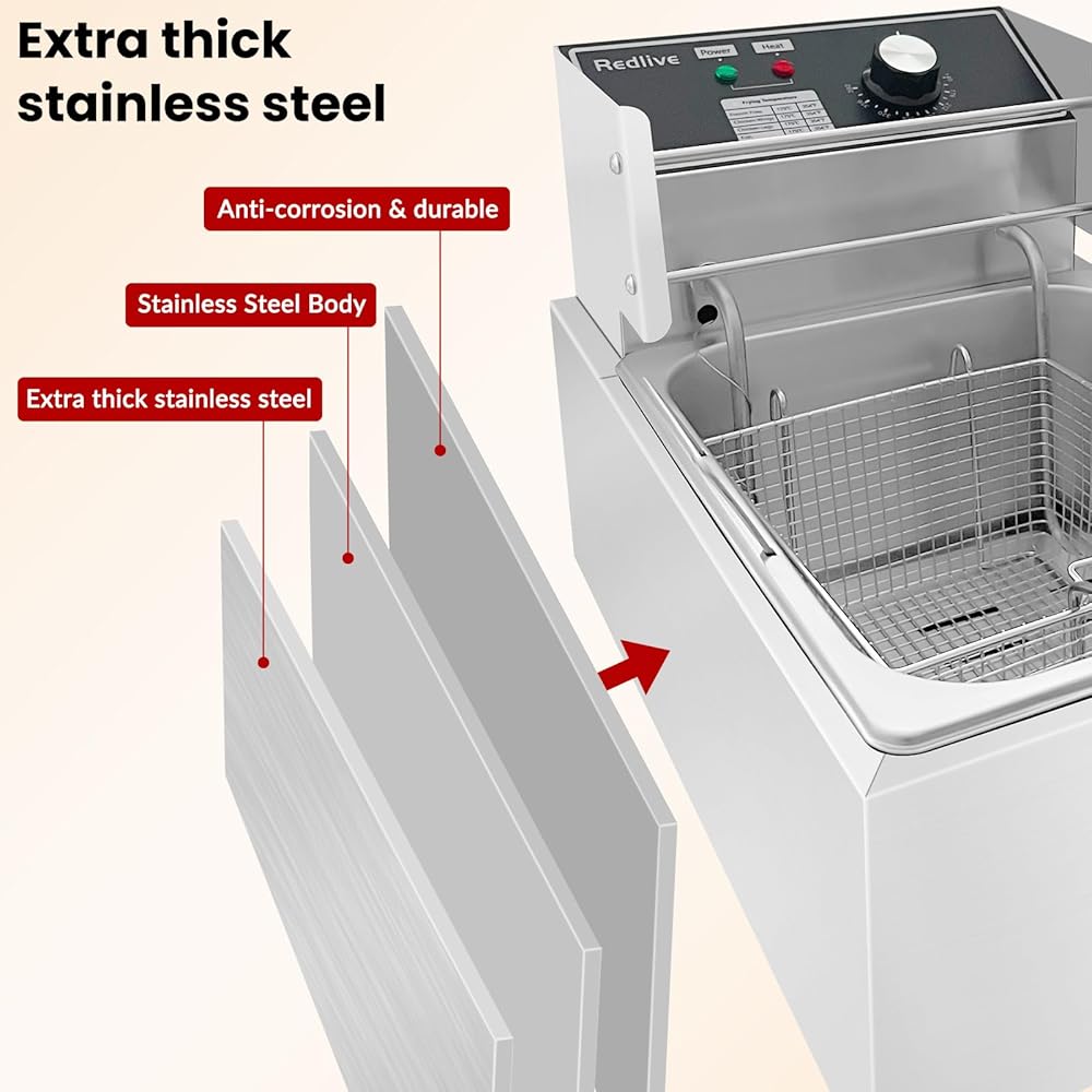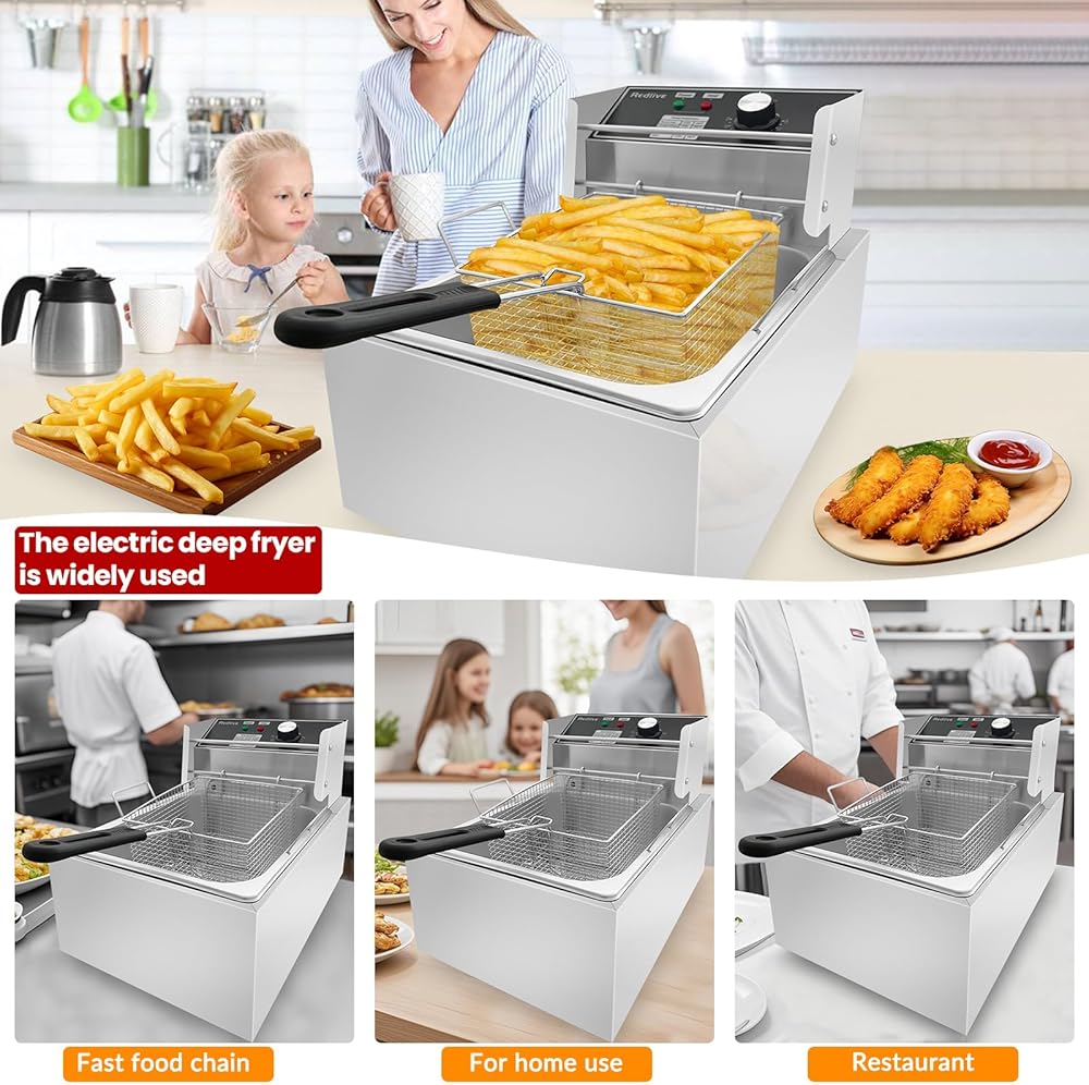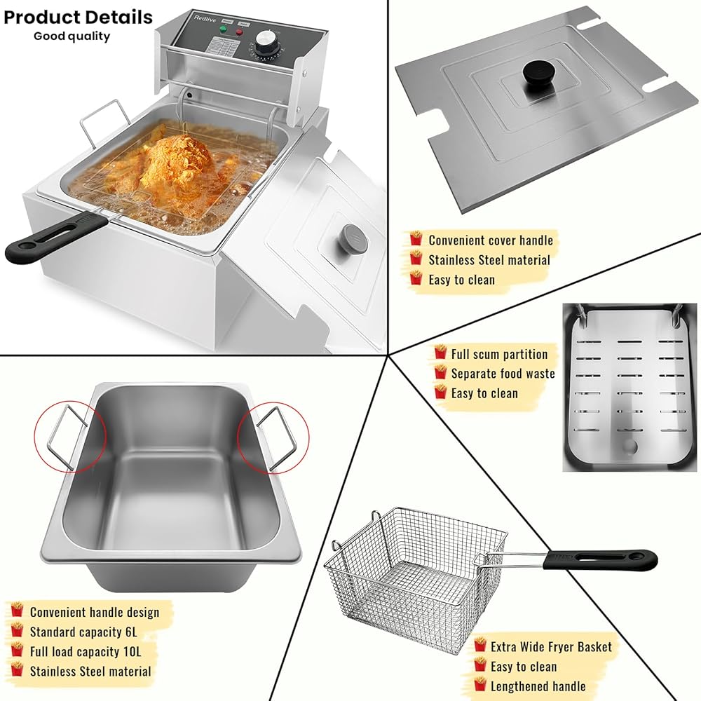 • 【سعة كبيرة مجهزة بحوض زيت 10L و 6 لتر من المقلاة ، يمكن لهذا المقلاة العميقة الكبيرة التعامل مع ما يكفي من الطعام ل 3-5 أشخاص دفعة واحدة. مثالي للاستخدام المنزلي والإعدادات التجارية ، إنه مقلاة عميقة تجارية متعددة الاستخدامات تلبي احتياجات الطهي عالية الطلب.