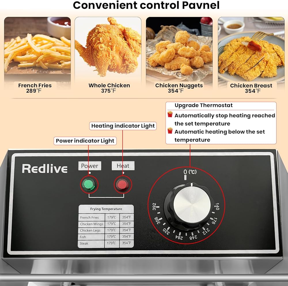 • 【التحكم في درجة الحرارة القابلة للتعديل】 يأتي المقلاة العميقة الكهربائية مع ترموستات مدمجة ومقبض دوار للتحكم الدقيق في درجة الحرارة ، قابلة للتعديل من 140 درجة فهرنهايت إلى 390 درجة فهرنهايت. تتيح لك هذه الميزة تخصيص درجة حرارة القلي والوقت بناءً على نوع الطعام ، مما يضمن نتائج مثالية في كل مرة.
