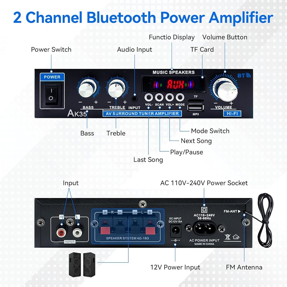 [صوت قوي] يوفر مكبر الصوت AK35 Stereo Audio قوة ذروة 200 واط وقوة 30W+30W ، مناسبة تمامًا لمكبرات صوت سلبية من 4 إلى 16 بوصة.