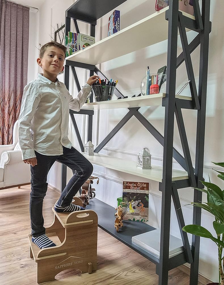 متينة وآمنة: كراسي خشبية للأطفال من سافير هوم مصنوعة من مواد عالية الجودة لضمان الاستخدام طويل الأمد. مقعد الأطفال الخاص بنا مصنوع من خشب ام دي اف المتين بسمك 0.7 انش لحمل ما يصل إلى 150 باوند. بحيث يمكن استخدامها كمقاعد متدرجة للبالغين أقل من 150 باوند. بفضل تصميمه الفريد، فإنه سهل التركيب وقوي للغاية ومستقر.