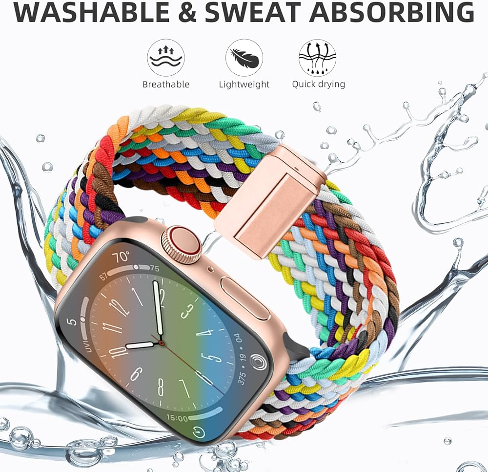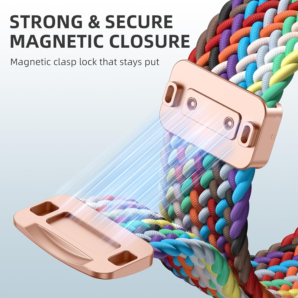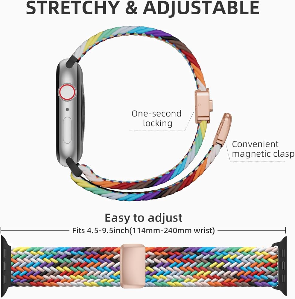 【قابلة للتعديل من أجل نطاقات zedoli zedoli النايلون iWatch للنساء والرجال مع تصميمها بدون فتحة ، يمكن تعديل هذه الفرقة لتناسب مخصص على أي حجم معصم. سواء كان لديك معصم نحيف أو أكبر ، تقدم الفرقة ملاءمة مريحة وشخصية لكل من الرجال والنساء. يسمح الإبزيم المغناطيسي المبتكر بتعديل طول الشريط من 114 مم إلى 240 مم ، وهو مناسب لأحجام الرسغ التي تتراوح من 4.5 بوصات إلى 9.5 بوصة