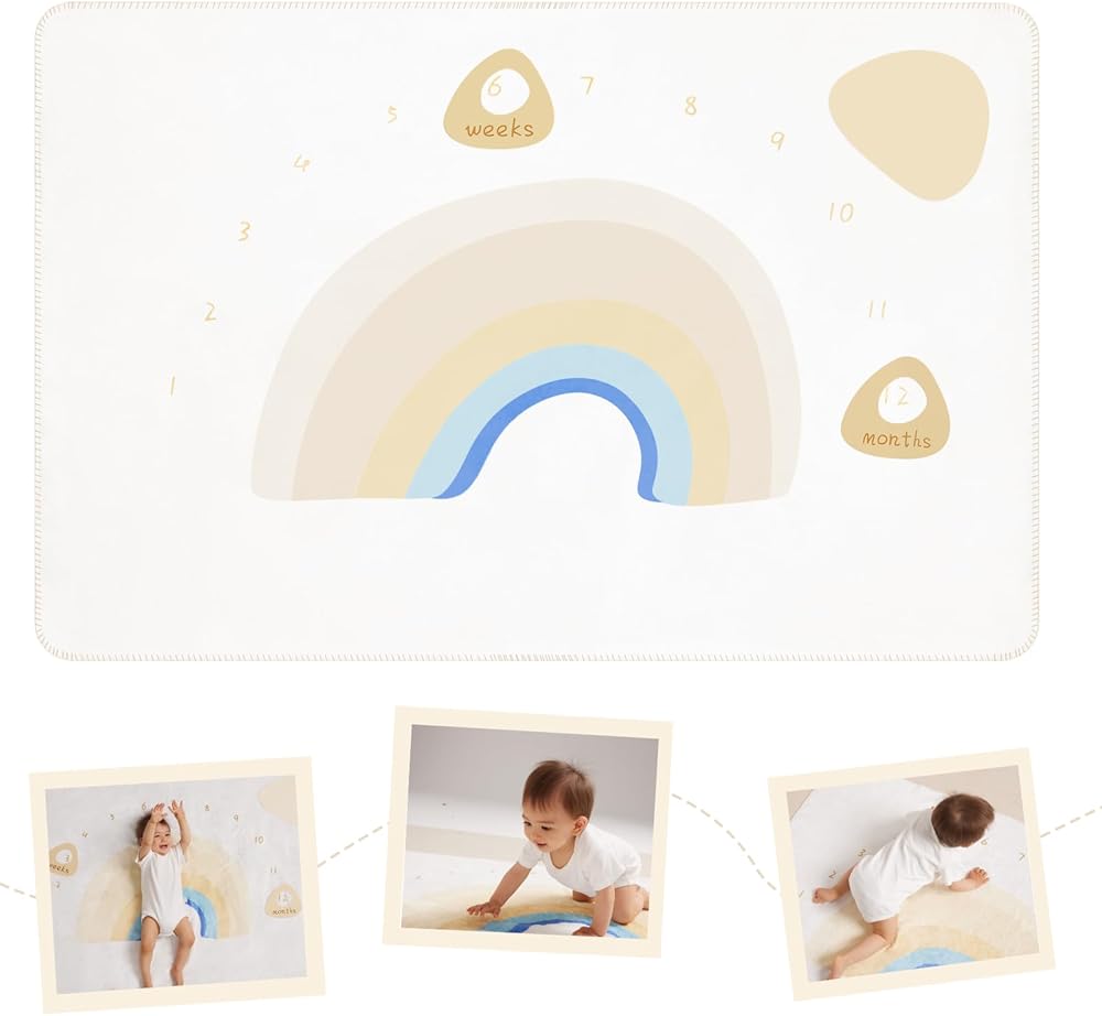 👶Perfect Size: This adorable milestone baby blanket with a rainbow design measures 40x60 inches, making it an ideal backdrop for capturing the baby's first-year growth.The best part about this blanket is that it doesn't shed, so you don't have to worry about leaving little fuzzies on your baby.