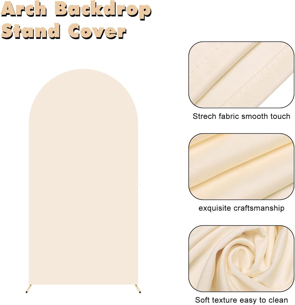 6ft Arch Backdrop Stand ومجموعة الغلاف ، وغطاء الخلفية المليئة بالدنة البيج وإطار قوس الزفاف الذهبي لحفل حفل زفاف عيد ميلاد الزفاف ، زخرفة الحفلات.