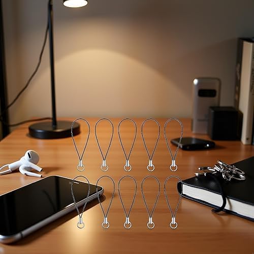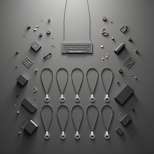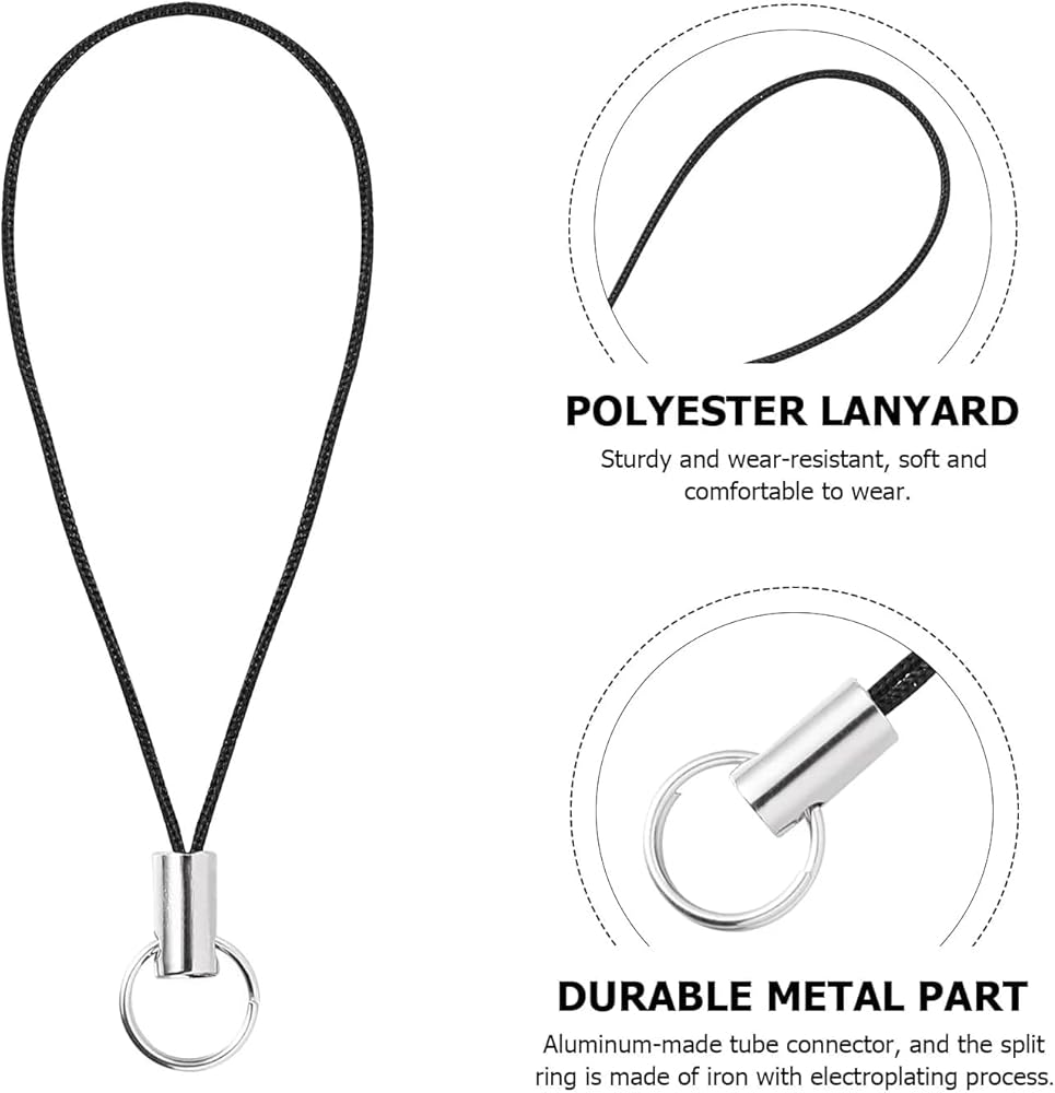 - محتويات الحزمة: مجموعة من 10 أحزمة حبل أسود مع حلقات تقسيم فضية متينة للربط بالأجهزة المحمولة والملحقات