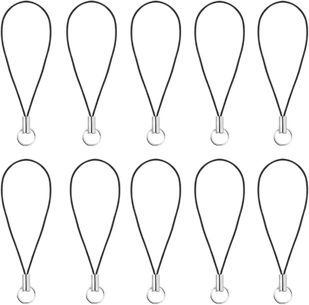 jowxsx 10 قطع حزام حبل الهاتف الخلوي الأسود مع حلقة الفضة المنقسمة ، سحر الهاتف الخليوي ، حبل حزام معصم اليد لمحرك أقراص فلاش USB ، لمشغل mp3