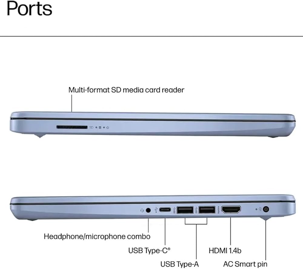 🖥HD Display: 14-inch HD (1366 x 768) display, BrightView. With micro-edge design, delivering vibrant visuals and reduced eye strain. And the built-in HP True Vision 720p HD webcam enables easy video calls, ensures crisp video and clear audio during online meetings or video calls