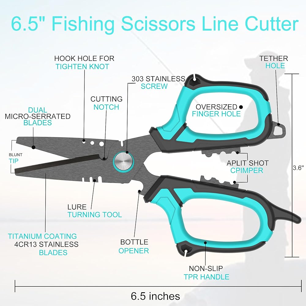 • 【أدوات الصيد متعددة الوظائف】 يمكن أن تكون مجموعة الأسماك والمقصات متعددة الاستخدامات إكمال مهام مختلفة في الصيد. يمكن استخدامها كقطعة لخط الصيد ، القنص خط الأسلاك الصلبة ، قاطع الأنبوب ، جريمة لقطة مقسمة ، طعم ضبط ، خيوط ، ربط عقدة ، فتاحة الزجاجة وثقب الحبل لتأمينه. إنه حل الكل في واحد للصيادين على الماء.