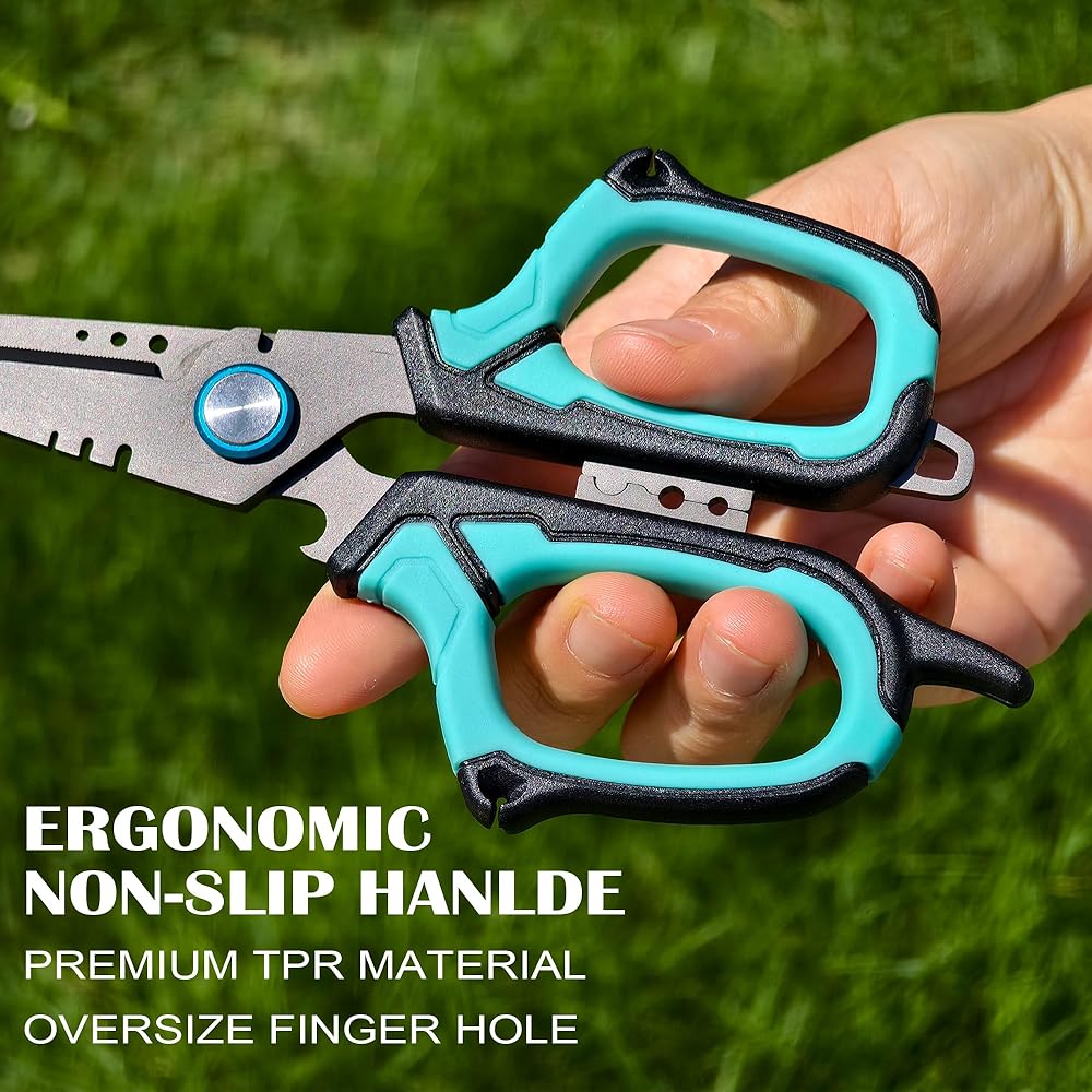 • 【قبضة غير مريحة غير قابلة للانزلاق】 مجموعة مقصات متعددة الأدوات الشاقة المصممة مع مقابض غير قابلة للانزلاق كبيرة الحجم ، توفر قبضة مريحة وآمنة ؛ يضمن تصميمها المريح موثوقًا به ، حتى في الظروف الرطبة أو الزلقة ، مما يوفر للصيادين الثقة والسلامة.
