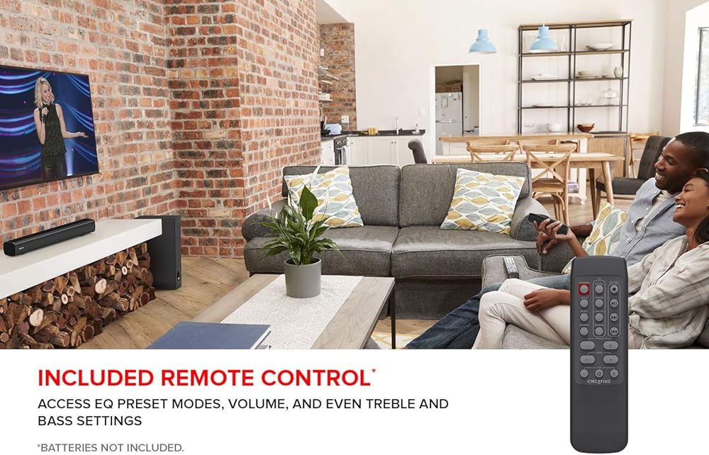 CLUTTER-FREE, UNDER-MONITOR SOUNDBAR FOR COMPUTER AND TV | Fits perfectly under a PC monitor and blends naturally into any room interior with its sleek, subtle design. The soundbar also comes with a wall mounting kit that allows you to install the Creative Stage easily onto your wall with included instructions and hardware. The soundbar is conveniently powered by a single built-in power plug, providing you with a clutter-free desktop and TV console – just connect it to a power source and you're