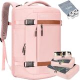 حقيبة ظهر 42L سفر مع 4 مكعبات تعبئة ، حقائب تحمل Friendly Friendly Flight مع ميناء شحن USB ، حقيبة ظهر للأعمال المقاومة للماء للرجال ، تناسبها 17.3 "كمبيوتر محمول (أسود)